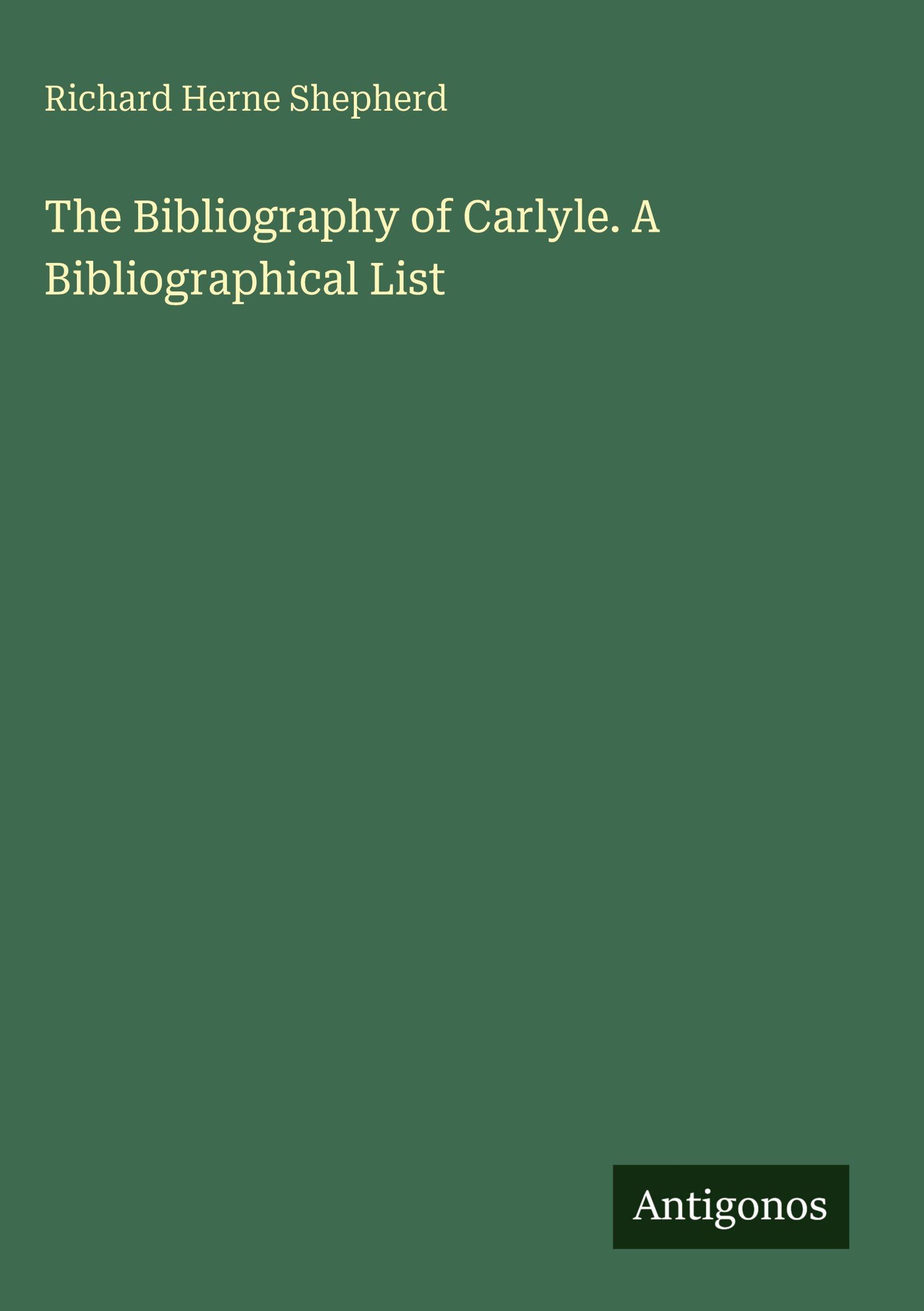 Richard Herne Shepherd: The Bibliography of Carlyle. A Bibliographical List, Gebunden