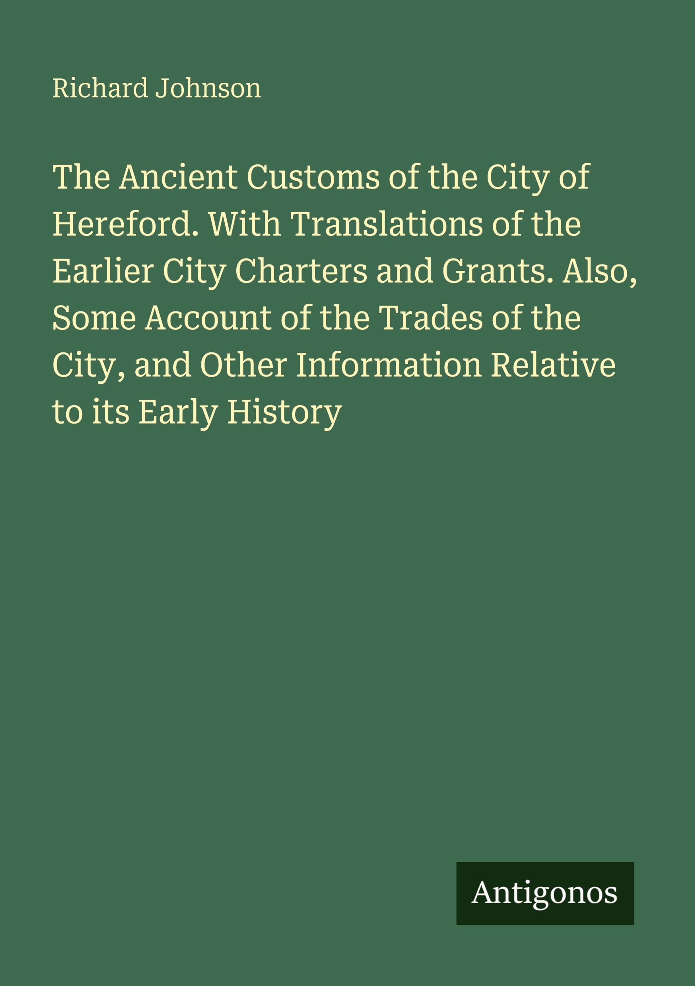 Richard Johnson: The Ancient Customs of the City of Hereford. With Translations of the Earlier City Charters and..., Kartoniert / Broschiert