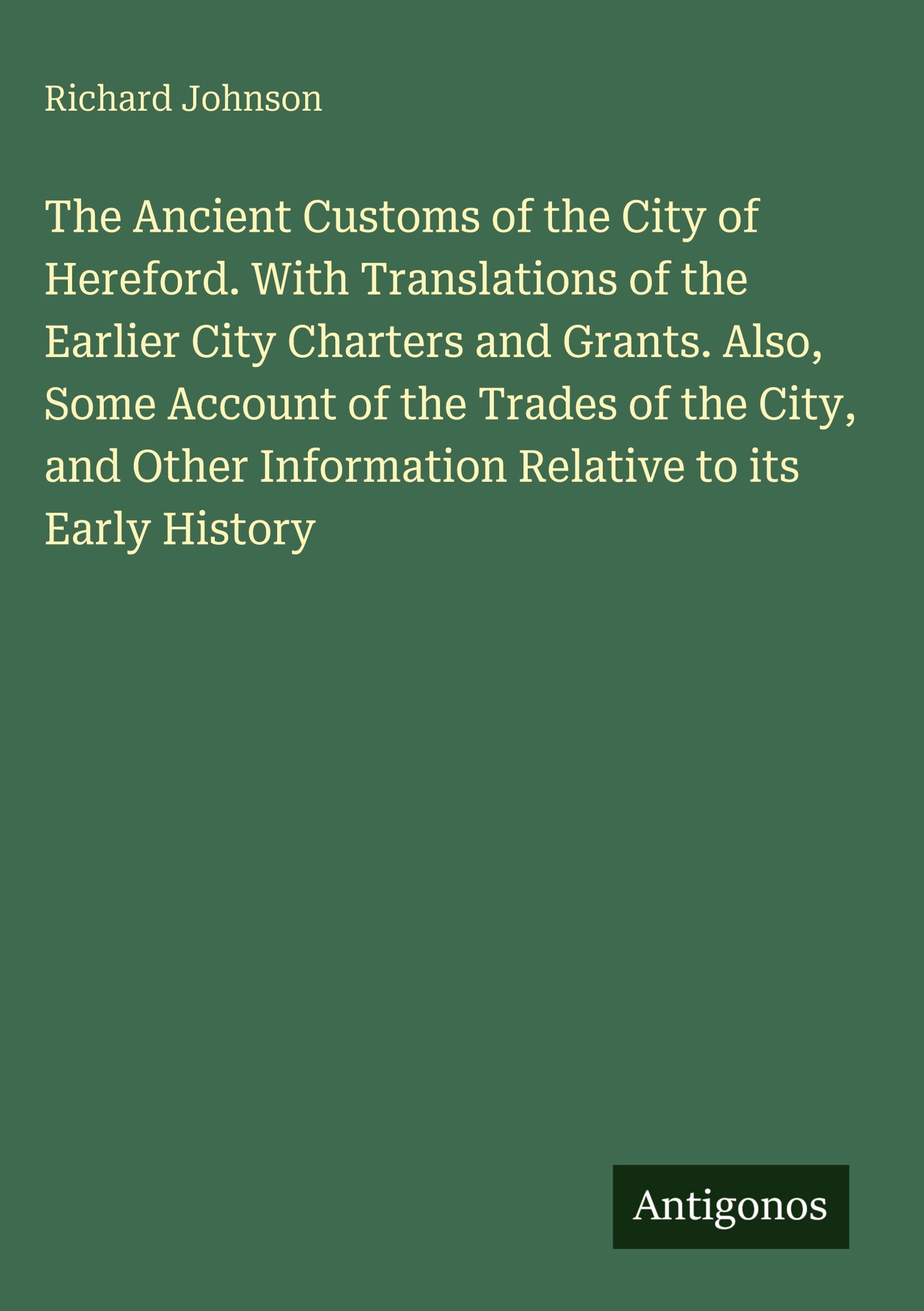 Richard Johnson: The Ancient Customs of the City of Hereford. With Translations of the Earlier City Charters and..., Gebunden