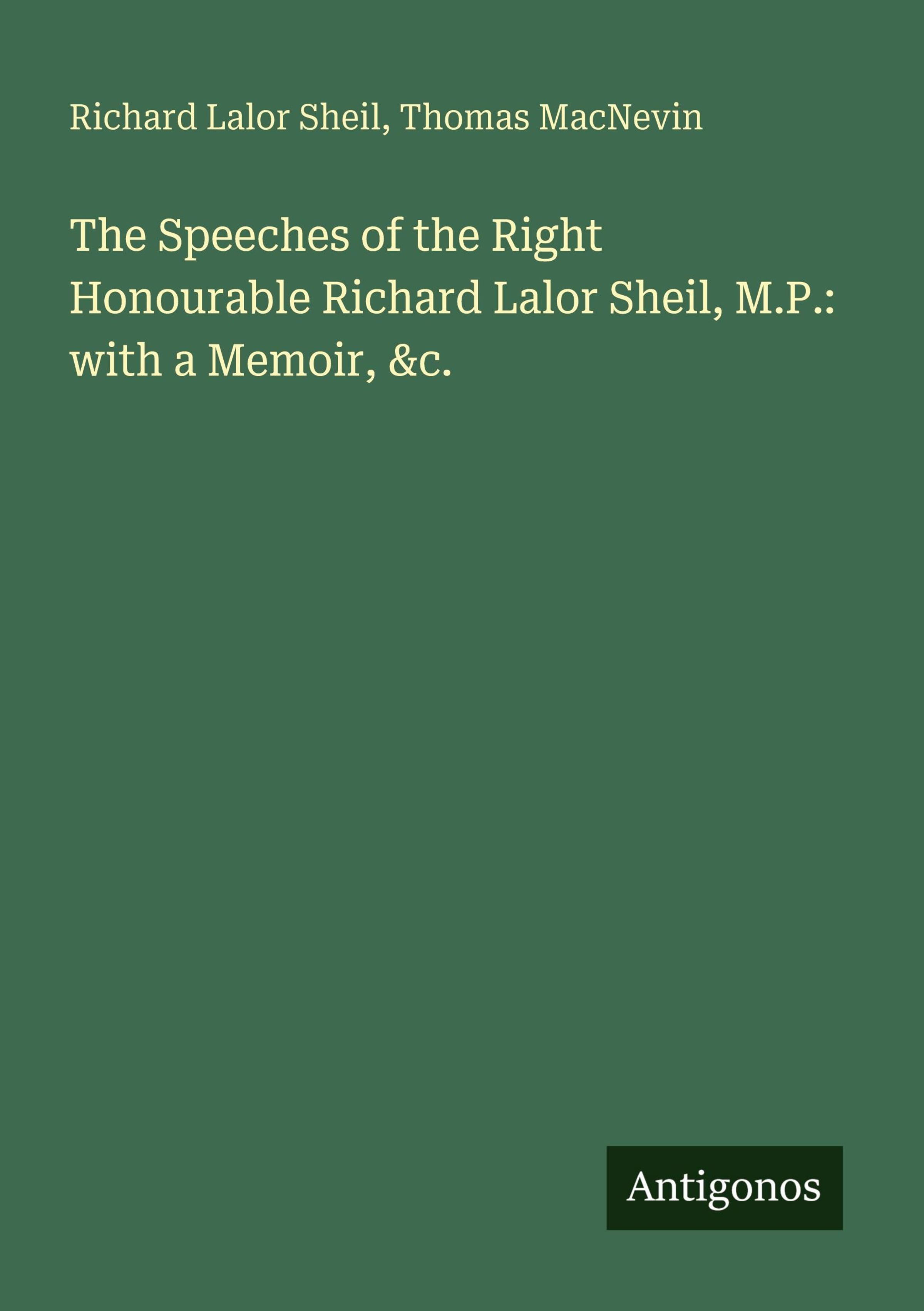Richard Lalor Sheil: The Speeches of the Right Honourable Richard Lalor Sheil, M.P.: with a Memoir, &c., Kartoniert / Broschiert