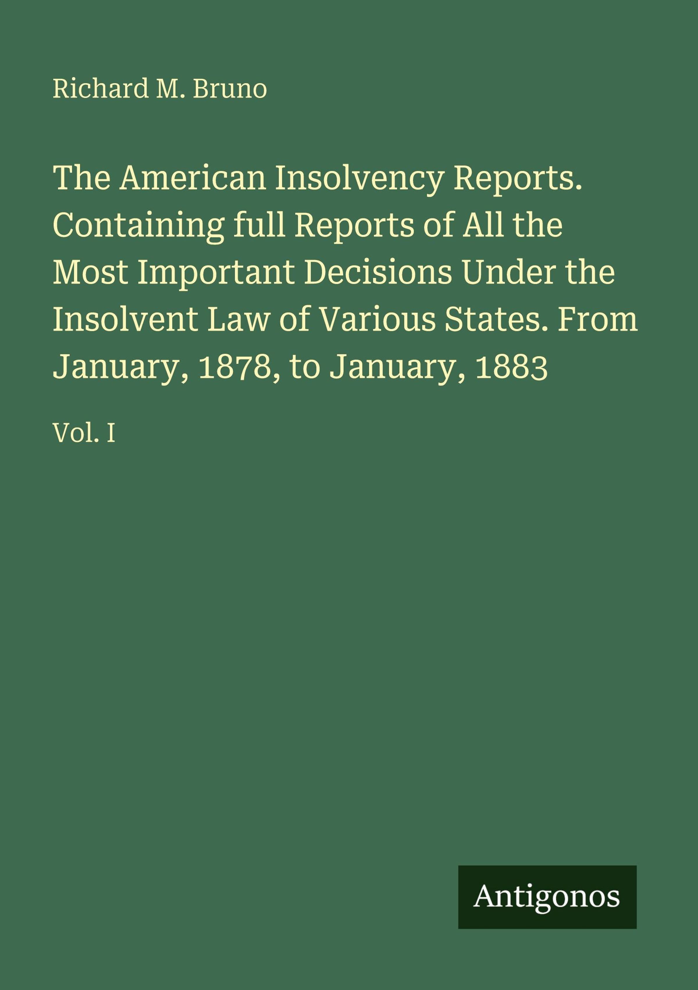 The American Insolvency Reports. Containing full Reports of All the Most Important Decisions Under the Insolvent Law of Various States. From January, 1878, to January, 1883