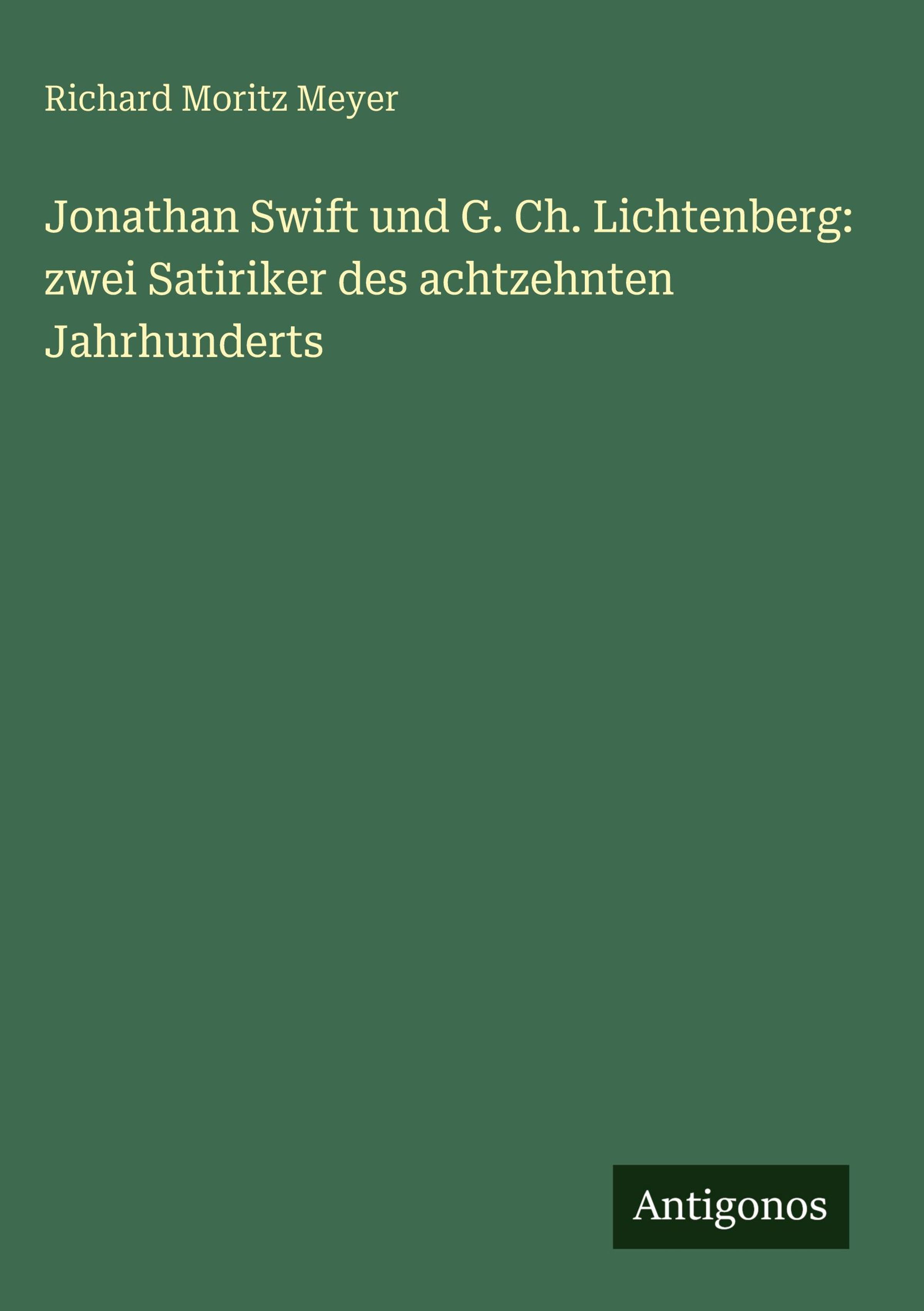 Richard Moritz Meyer: Jonathan Swift und G. Ch. Lichtenberg: zwei Satiriker des achtzehnten Jahrhunderts, Gebunden