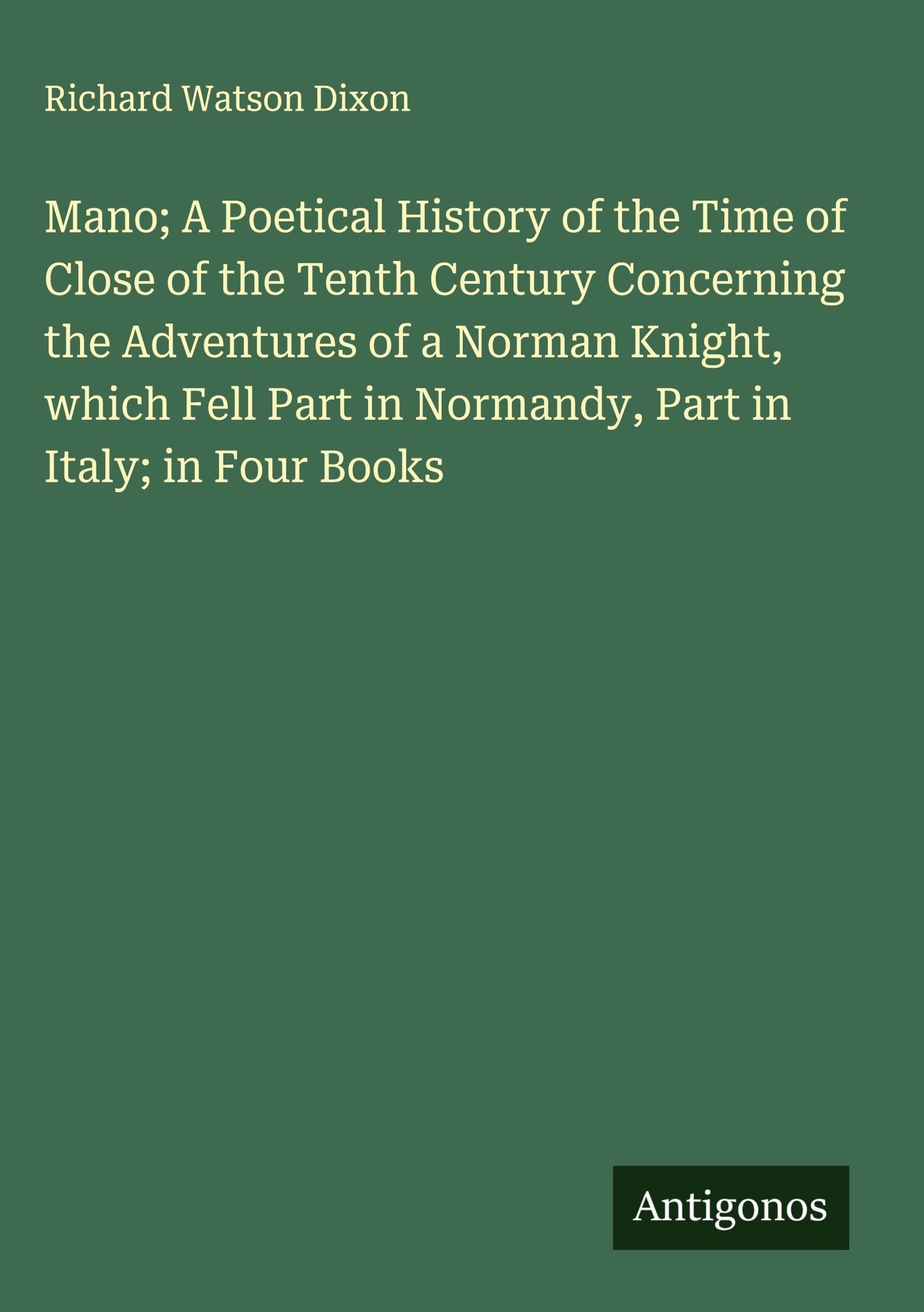 Mano; A Poetical History of the Time of Close of the Tenth Century Concerning the Adventures of a Norman Knight, which Fell Part in Normandy, Part in Italy; in Four Books