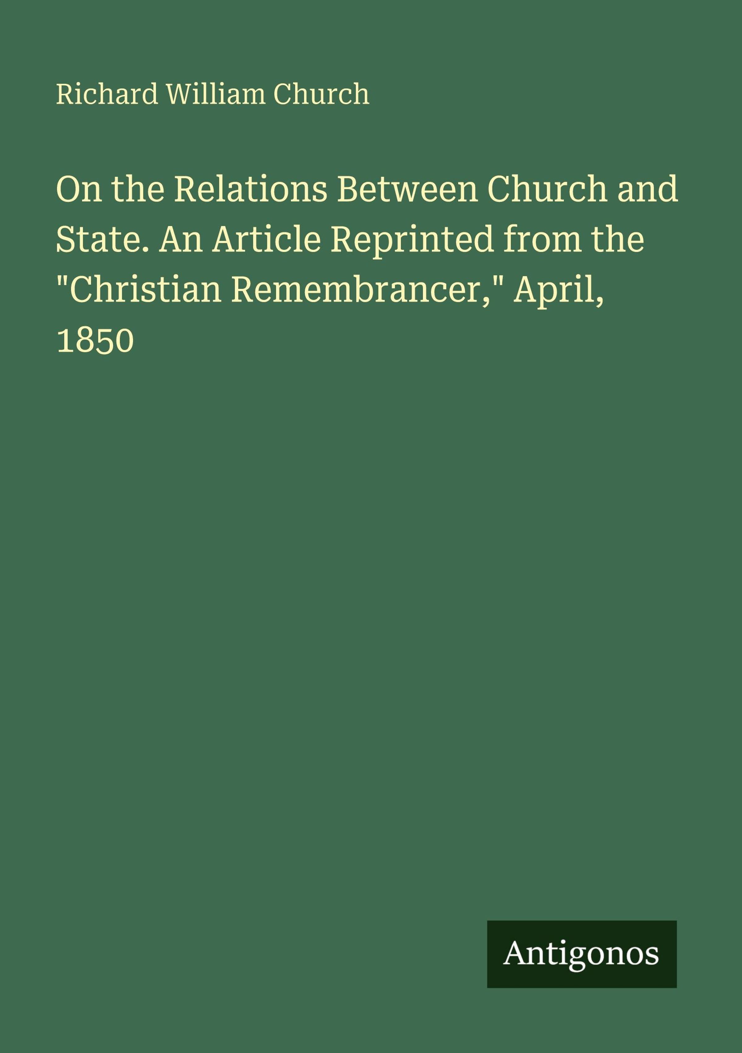 Richard William Church: On the Relations Between Church and State. An Article Reprinted from the "Christian..., Kartoniert / Broschiert