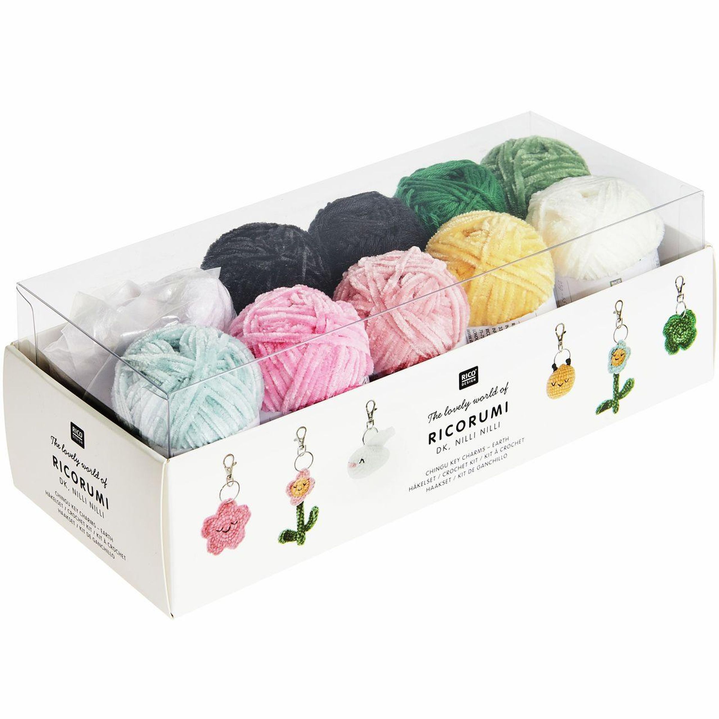 Ricorumi Häkelset "Schlüsselanhänger Chingu" - Earth, 9 Farben, 6 Schlüsselringe, Häkelnadel, Nähnadel,... (Sonstige Artikel)
