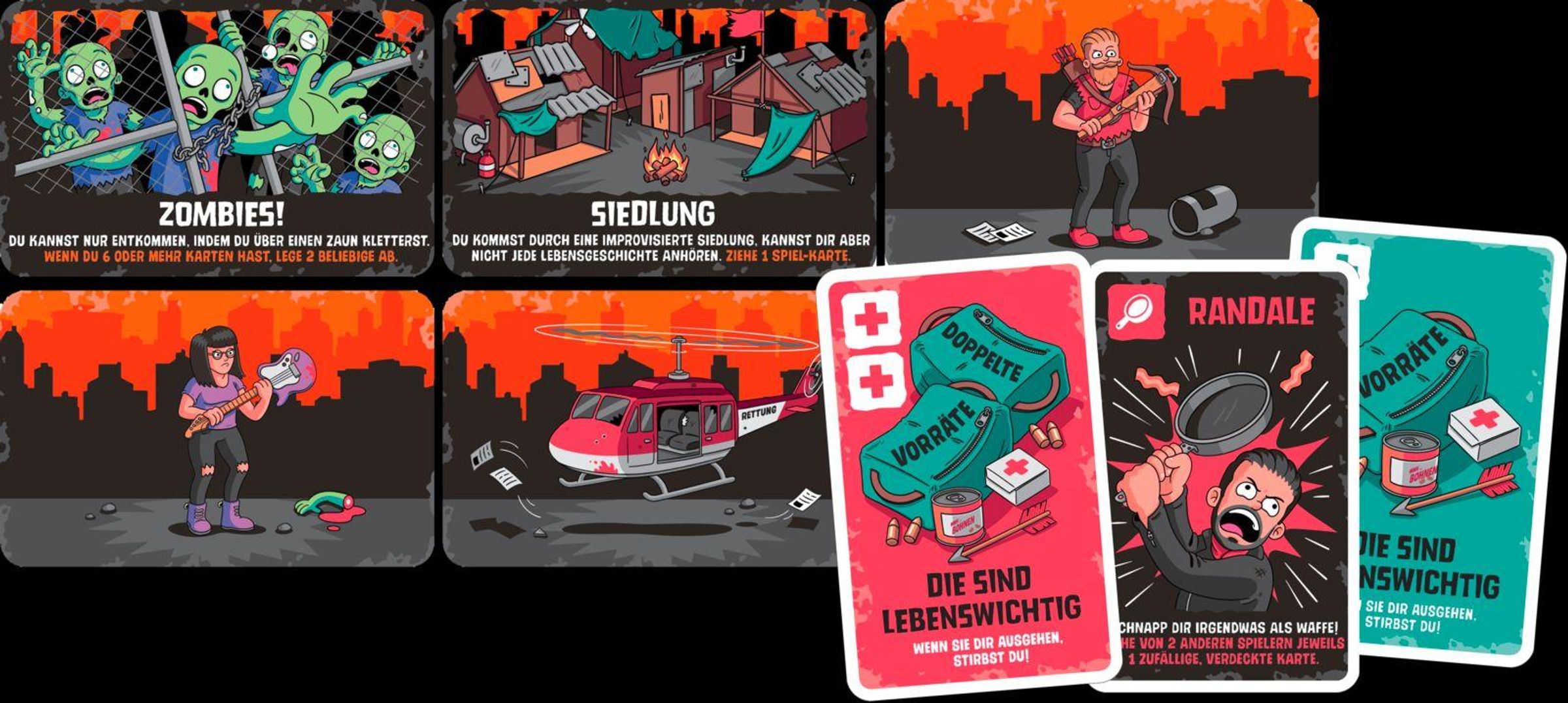 Du und deine Freunde seid Überlebende einer verheerenden Apokalypse und kämpft euch durch eine gruselige, zombieüberlaufene Ödnis. Doch nur einer von euch wird es zum Rettungshubschrauber schaffen und somit sein Leben retten. Teile deine Vorräte clever ein und sabotiere gnadenlos deine Mitspieler - und wirst du von einem Zombie erwischt, spiele als hirnfressender Untoter weiter!