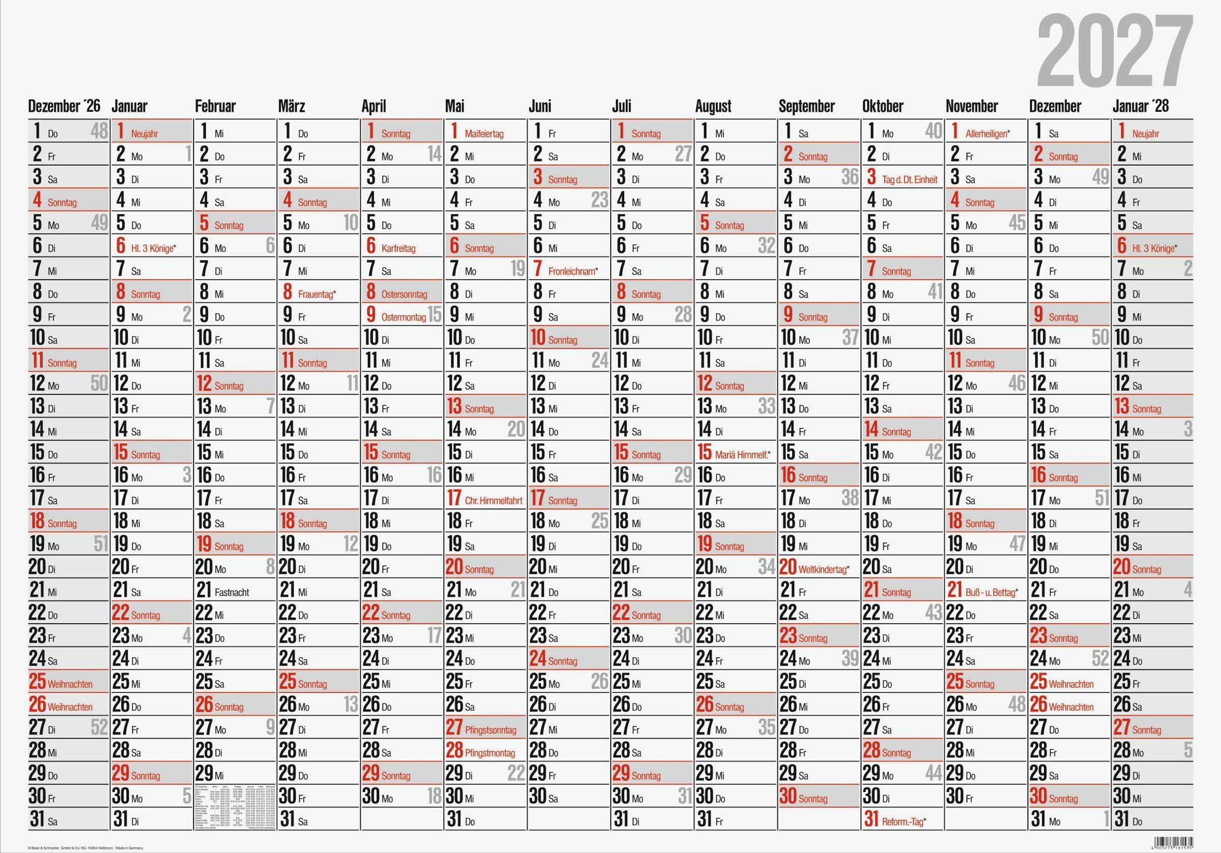 rido/idé 7033660007 Plakatkalender Mod. Office I 2027 980×685 mm, Kartoniert / Broschiert
