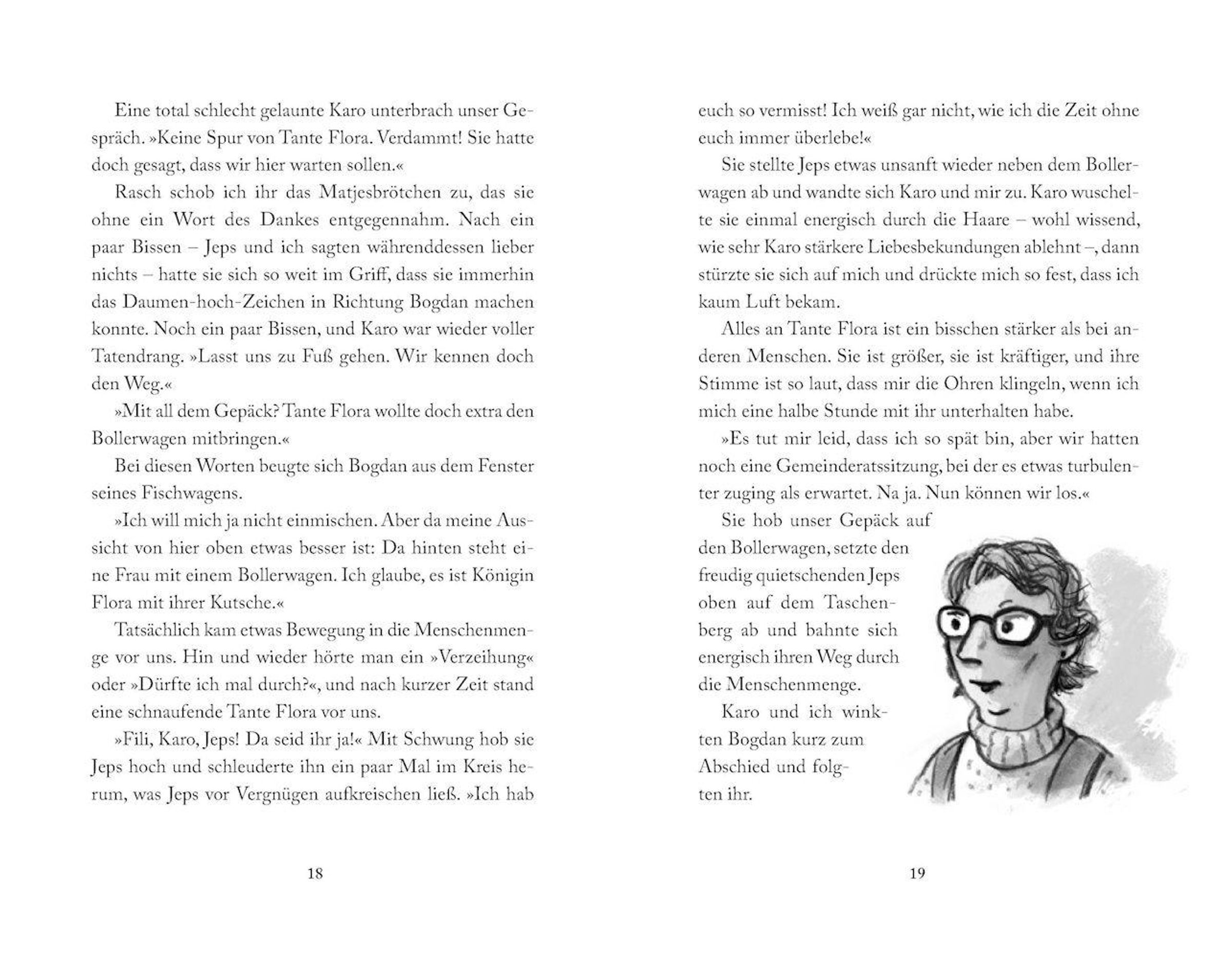 Fili, Karo und Jeps freuen sich auf elternfreie Sommerferien bei ihrer Patentante Flora. Die ist gerade Bürgermeisterin einer winzigen Nordseeinsel geworden und hat große Pläne: Esel statt Autos lautet ihre Devise! Anfangs ist das Idyll perfekt, doch als Tante Flora mit gebrochenem Bein aufs Festland muss, stehen die Kinder vor ungeahnten Herausforderungen. Aufgestachelt vom fiesen Bauer Böckmann proben die Insulaner nämlich den Aufstand gegen Tante Floras Ideen! Dazu kündigt sich wichtiger Besuch an, und zu allem Überfluss machen auch noch die Esel Ärger ...