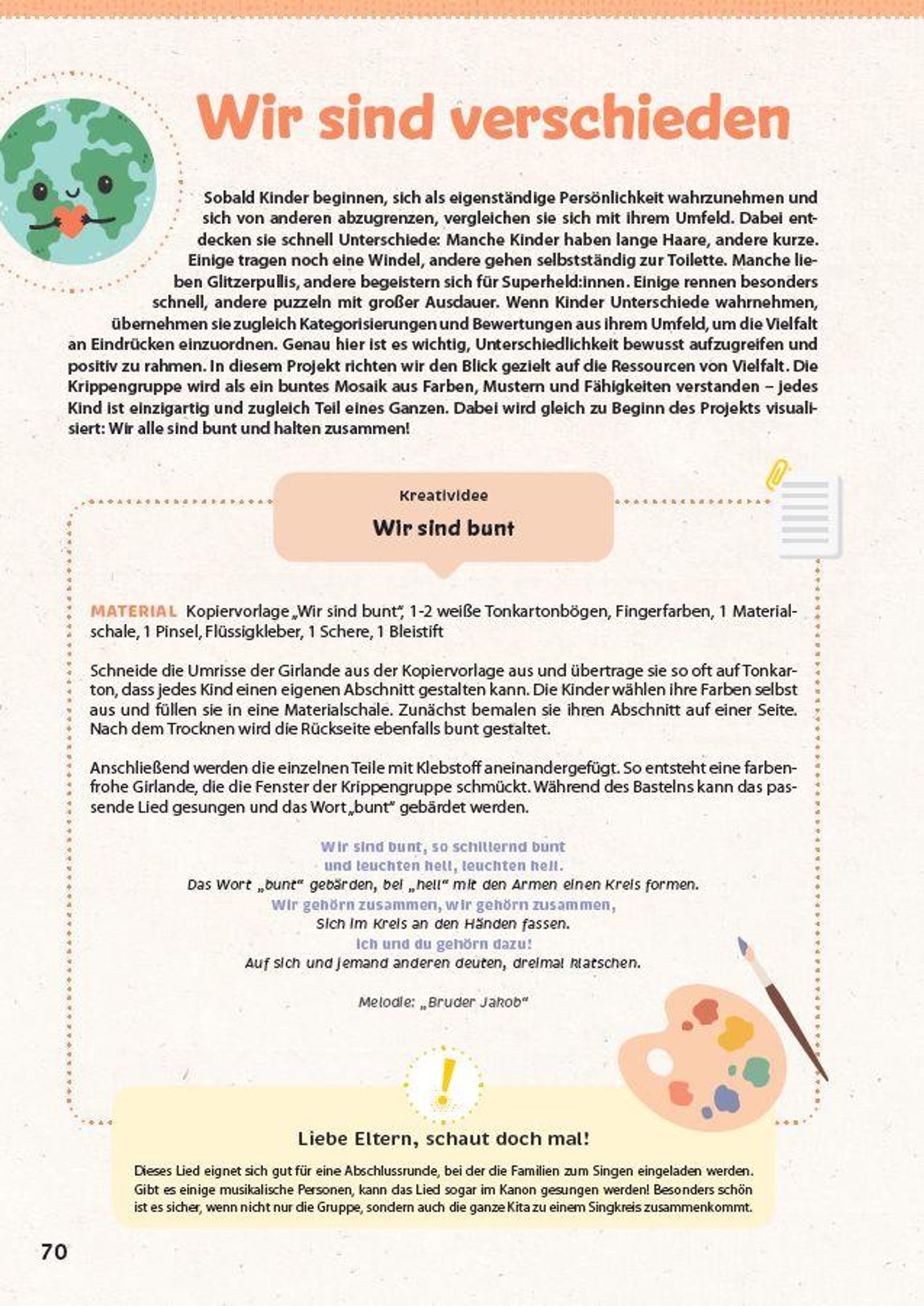 Ob Mini-Projekt, Impuls für zwischendurch oder Wochenplanung - mit dieser Sammlung bist du bestens ausgerüstet, um mit den Jüngsten Themen wie Gemeinschaft, Gefühle und Zusammenhalt kindgerecht zu erleben und sie in ihrer Persönlichkeitsentwicklung zu stärken.