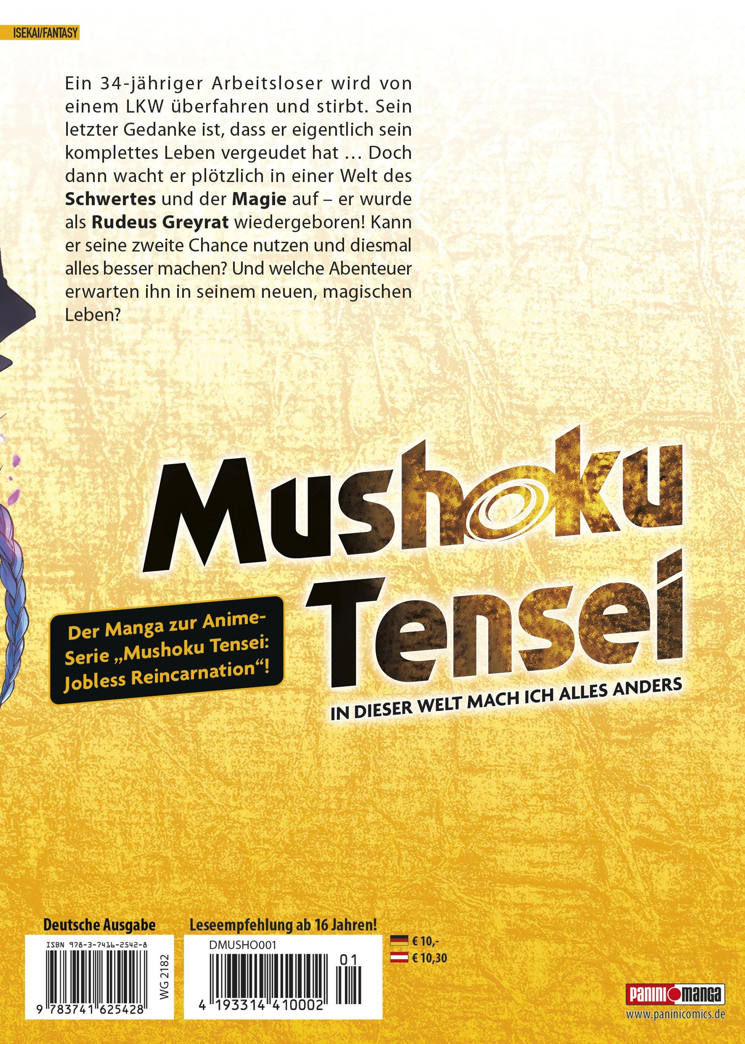 MUSHOKU TENSEI ist ein spannender Manga, der durch die sympathischen Charaktere und emotionale Tiefe auch zum Nachdenken anregt. Die Reihe erzählt die Geschichte eines 34-jährigen arbeitslosen Stubenhockers, der nach seinem Tod in einer mittelalterlichen Fantasywelt wiedergeboren wird und schwört ein neues und bedeutungsvolles Leben zu führen.