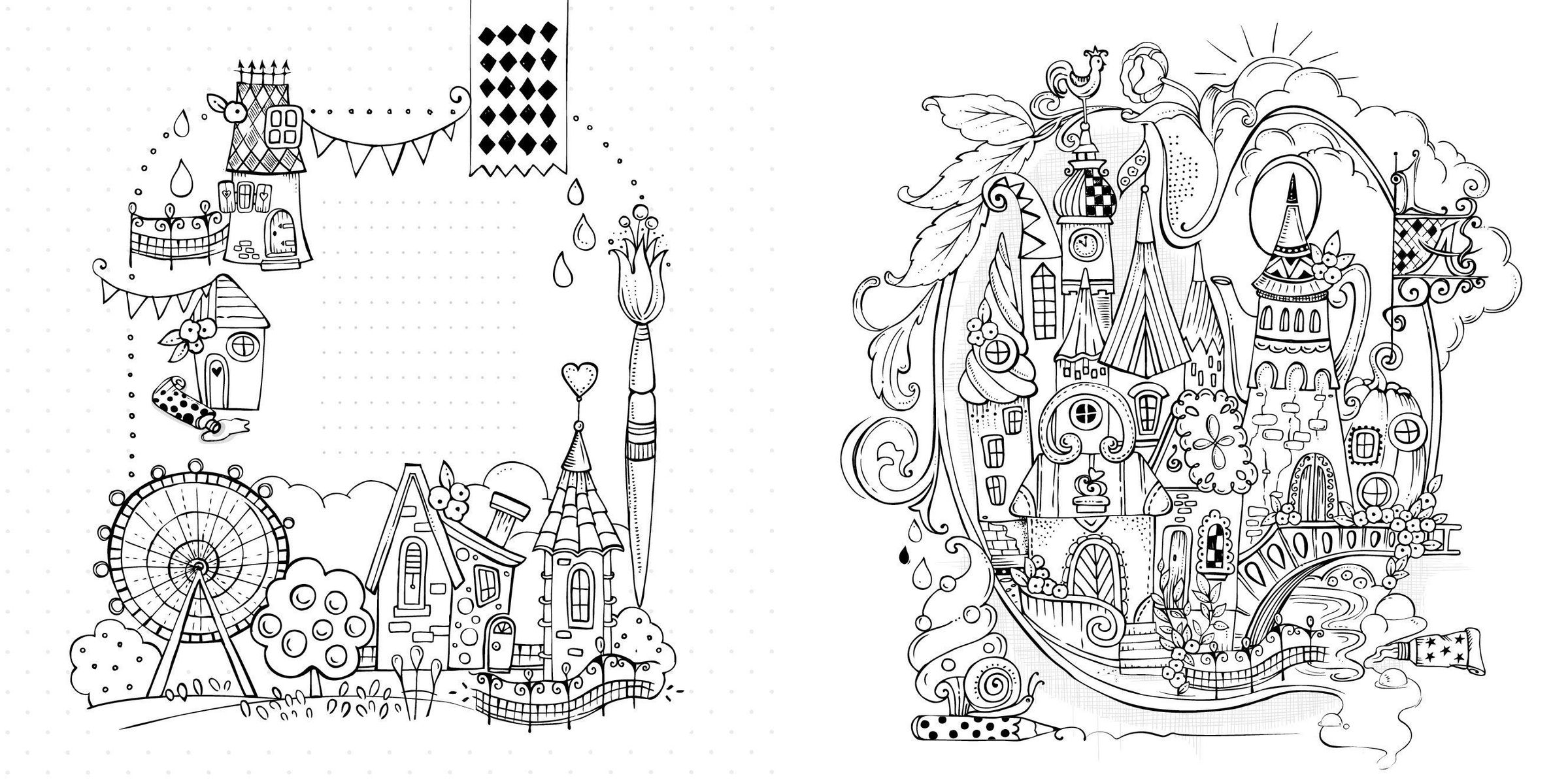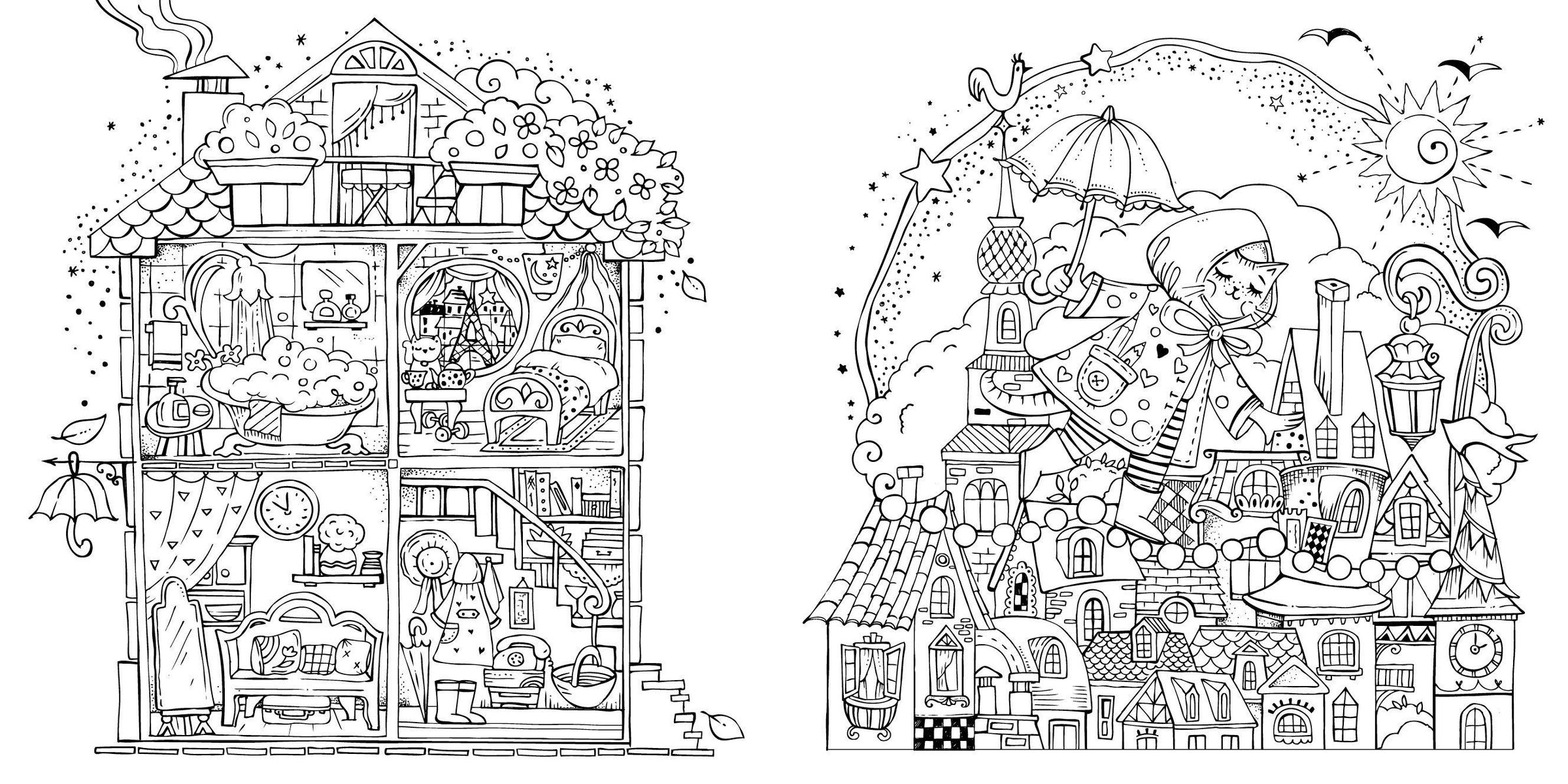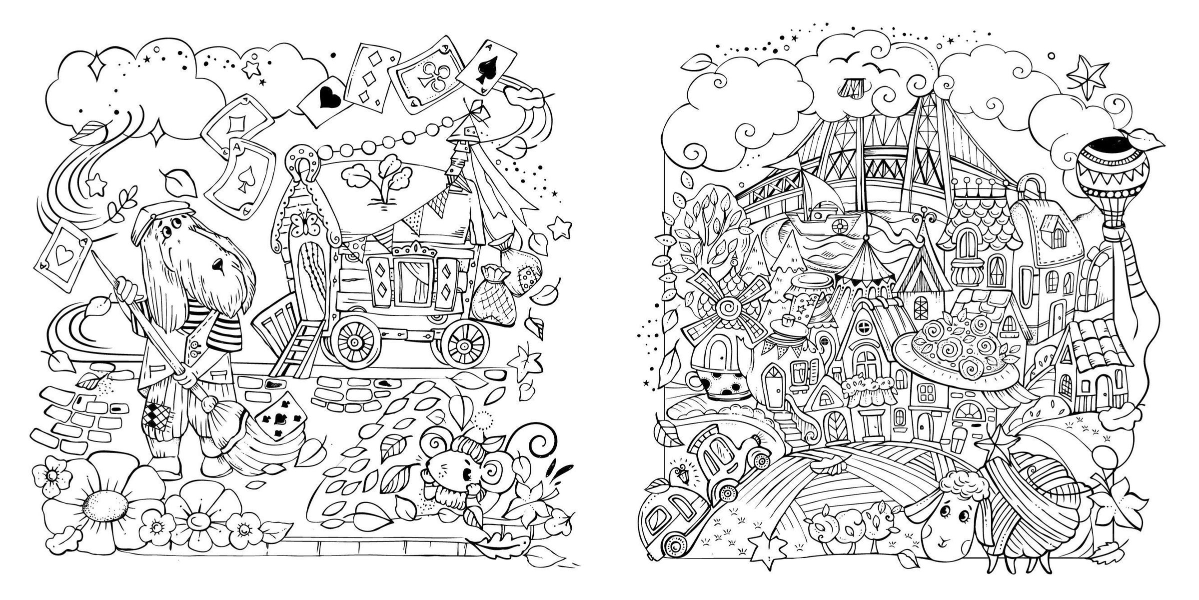 - Detailreiche Ausmalbilder, die kleine Geschichten erzählen