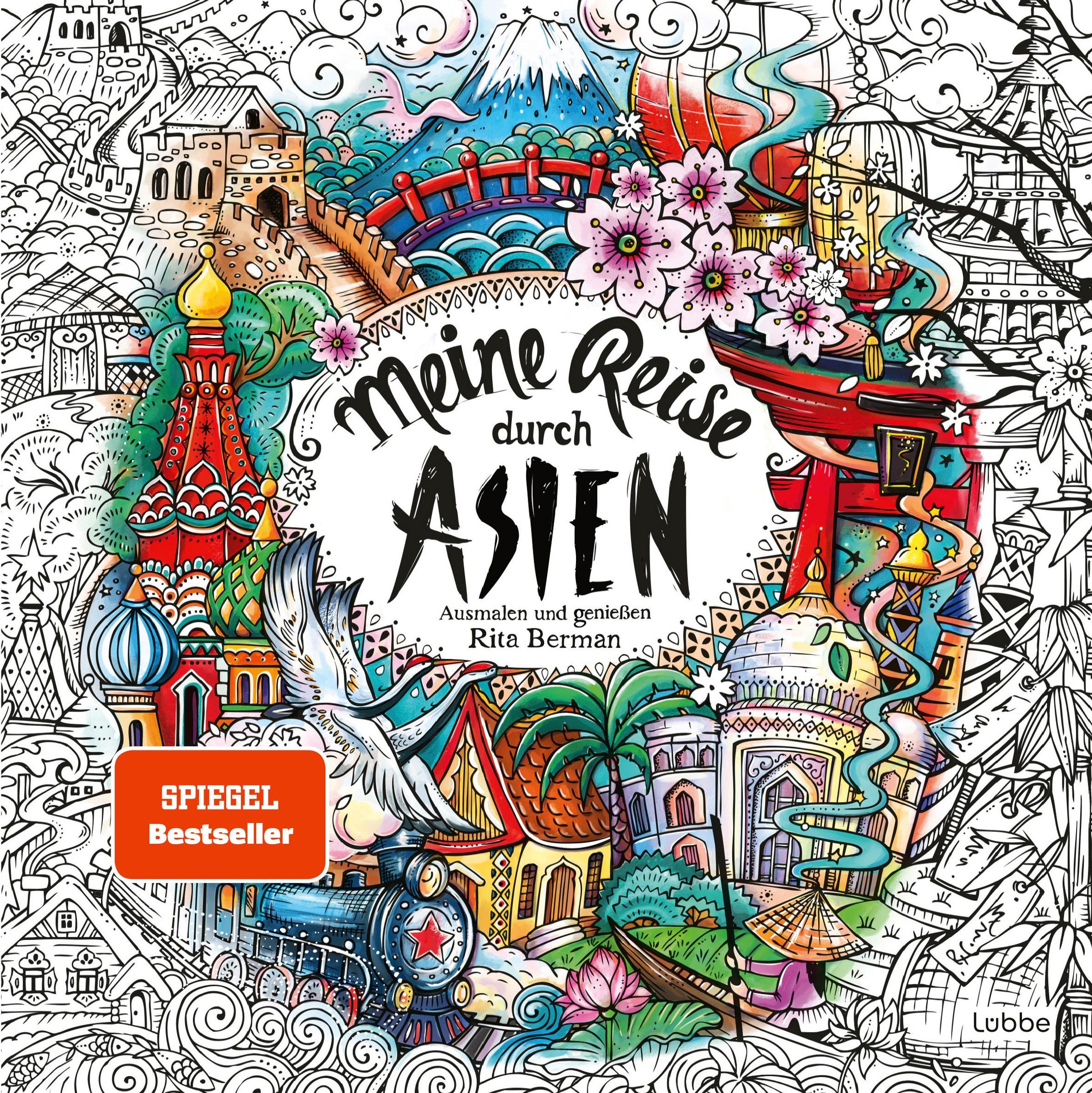 Fernreisen bleiben noch schwierig - was tun mit der vielen Zeit zu Hause? Das Malbuch von Rita Berman entführt in die Bilderwelt Asiens: Los geht es mit der Transsibirischen Eisenbahn zur japanischen Kirschblüte, weiter über die Chinesische Mauer hin zu traumhaften Stränden und durch tropische Blütenmeere hinein ins magische Indien bis zu orientalischen Basaren. Rita Berman holt mit ihren filigranen Motiven landestypische Sehenswürdigkeiten, Flora, Fauna und Muster in unsere Wohnzimmer. In dieses breite Panorama können sich die Zeichner: innen beim Ausmalen versenken, um auch hier ein wenig fernes Asien zu genießen.