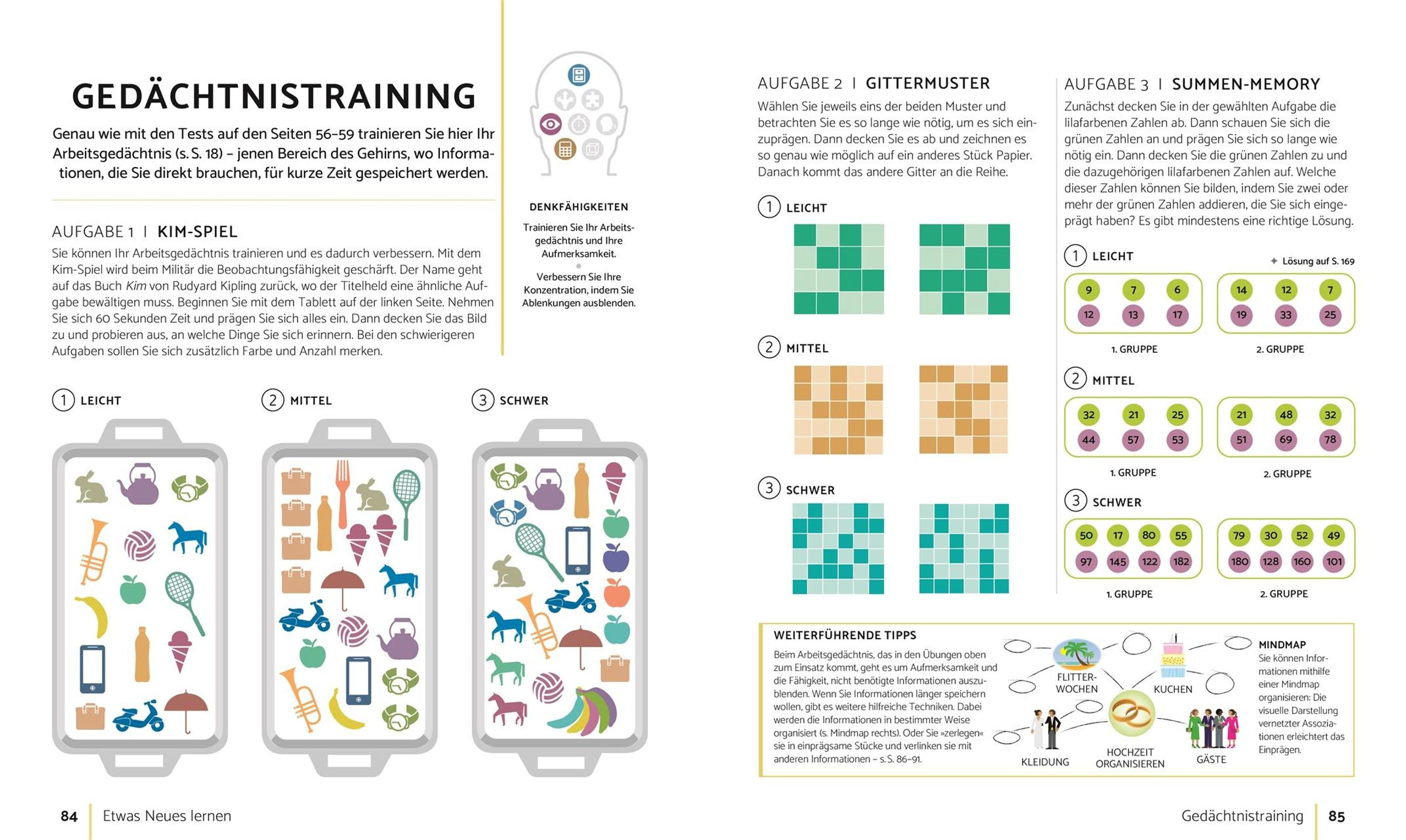 - Viele Inspirationen und Übungen , um die Gedächtnisleistungen anzuregen