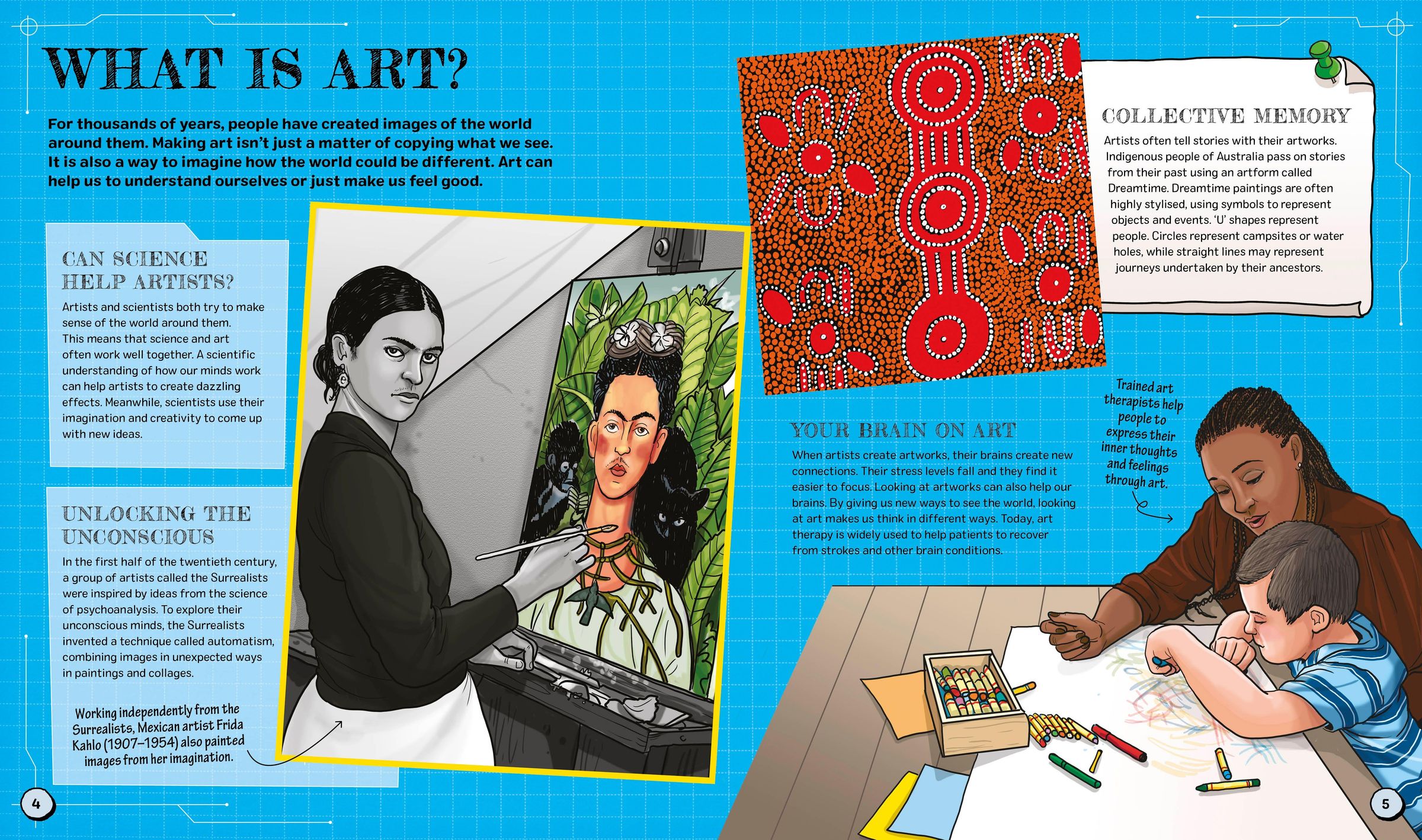 Questions include: What is colour theory? How do artists use maths in their paintings? How do scientists spot forgeries in a laboratory? And many, many more!