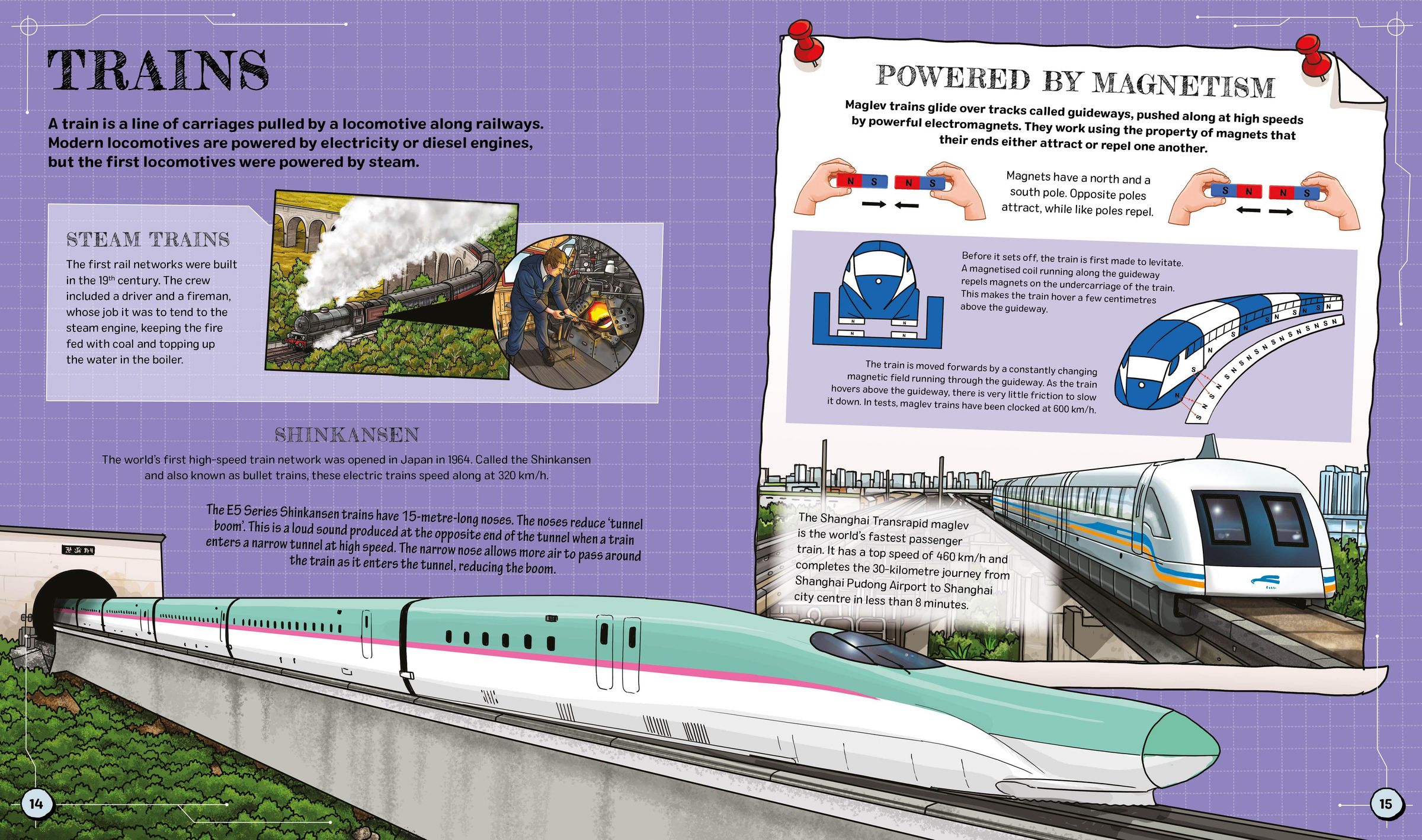 Find out how a Maglev train floats on air, what happens when you break the sound barrier, how modern airports and container ports work and many, many more!