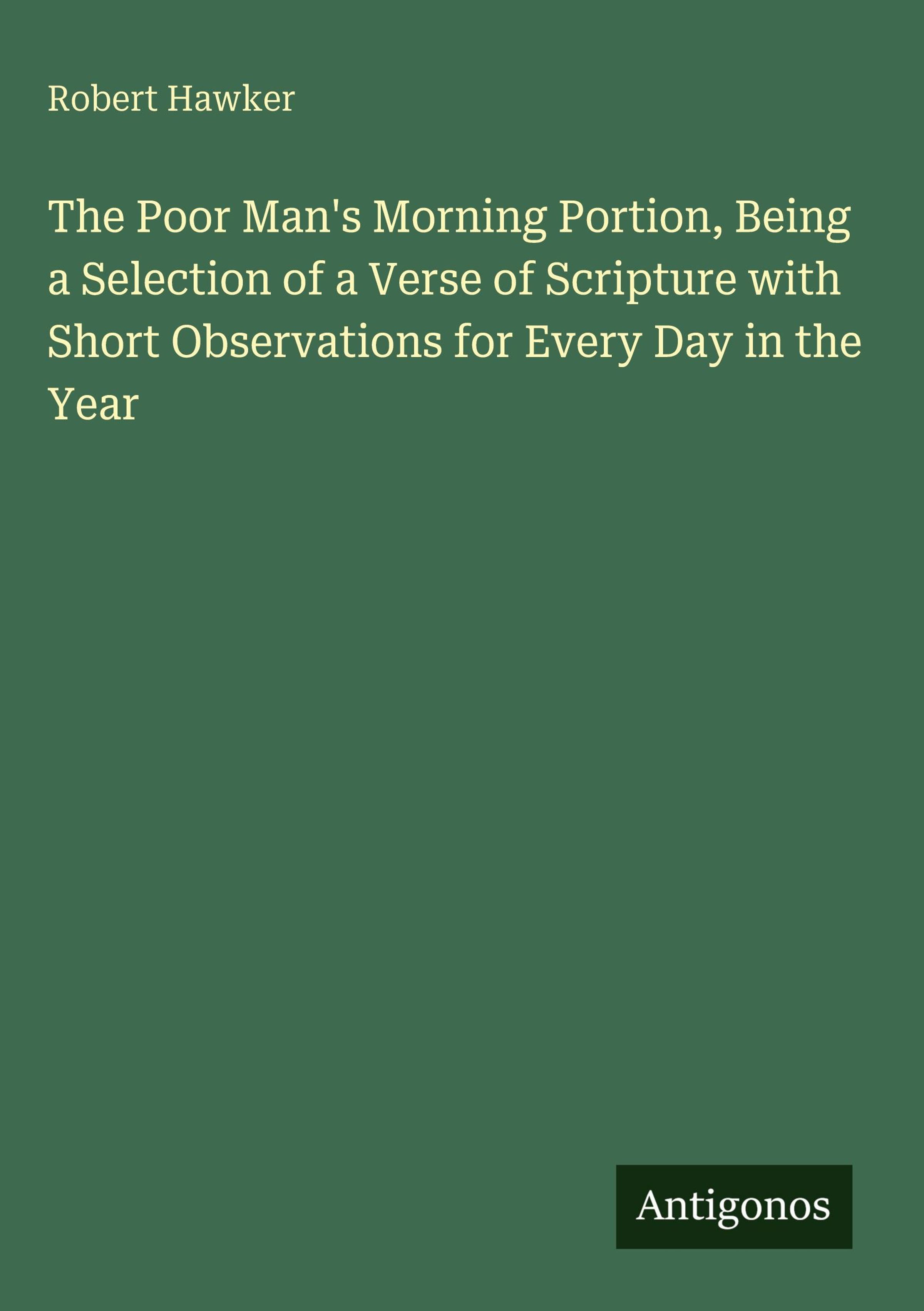 Robert Hawker: The Poor Man's Morning Portion, Being a Selection of a Verse of Scripture with Short Observations..., Gebunden