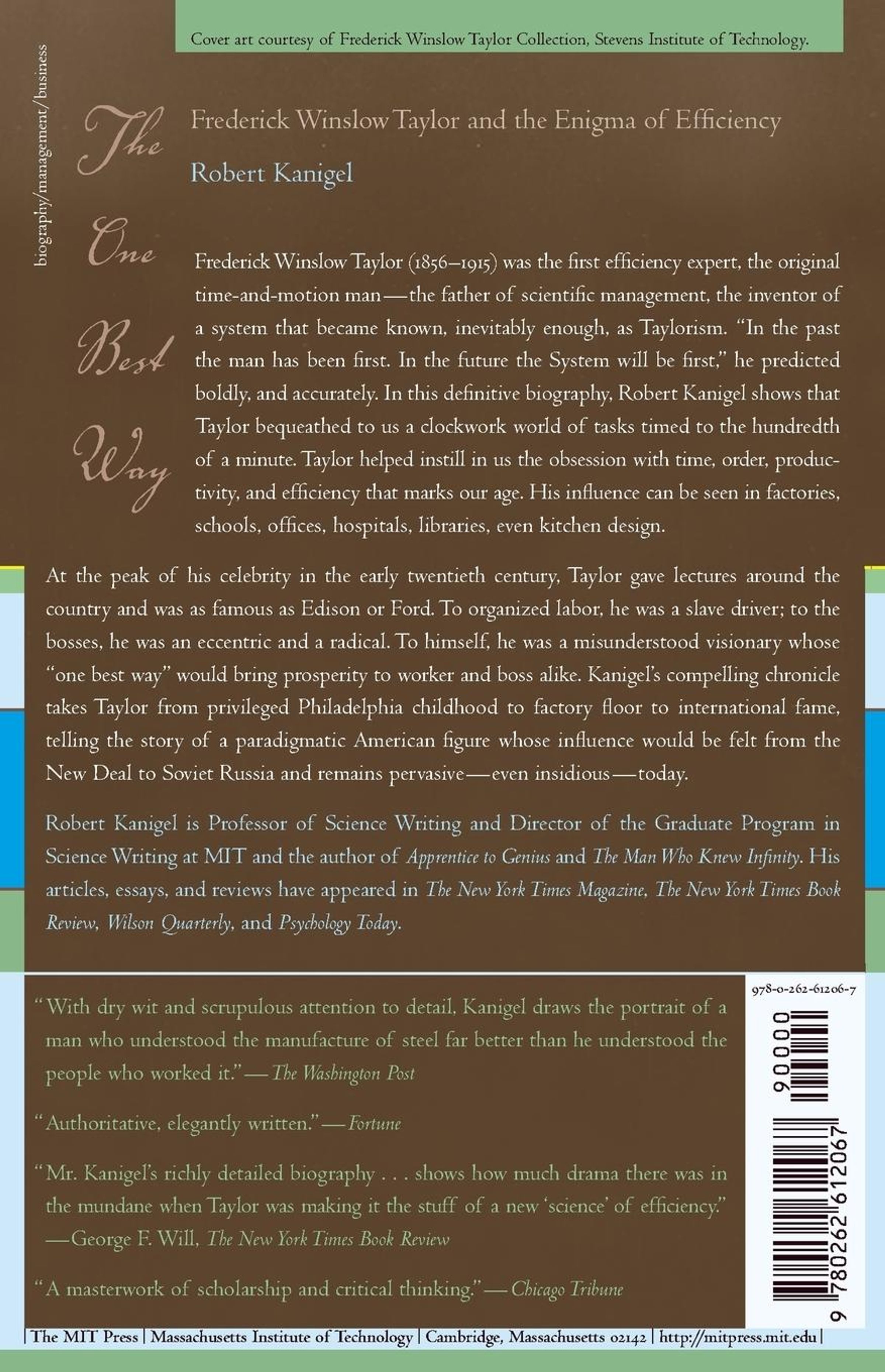 Frederick Winslow Taylor (1856-1915) was the first efficiency expert, the original time-and-motion man---the father of scientific management, the inventor of a system that became known, inevitably enough, as Taylorism. "In the past the man has been first. In the future the System will be first," he predicted boldly, and accurately. Taylor bequeathed to us, writes Robert Kanigel in this definitive biography, a clockwork world of tasks timed to the hundredth of a minute. Taylor helped instill in us the obsession with time, order, productivity, and efficiency that marks our age. His influence can be seen in factories, schools, offices, hospitals, libraries, even kitchen design. At the peak of his celebrity in the early twentieth century, Taylor gave lectures around the country and was as famous as Edison or Ford. To organized labor, he was a slave driver; to the bosses, he was an eccentric and a radical. To himself, he was a misunderstood visionary whose "one best way" would bring prosperity to worker and boss alike. Robert Kanigel's compelling chronicle takes Taylor from privileged Philadelphia childhood to factory floor to international fame, telling the story of a paradigmatic American figure whose influence would be felt from the New Deal to Soviet Russia and remains pervasive---even insidious---today.