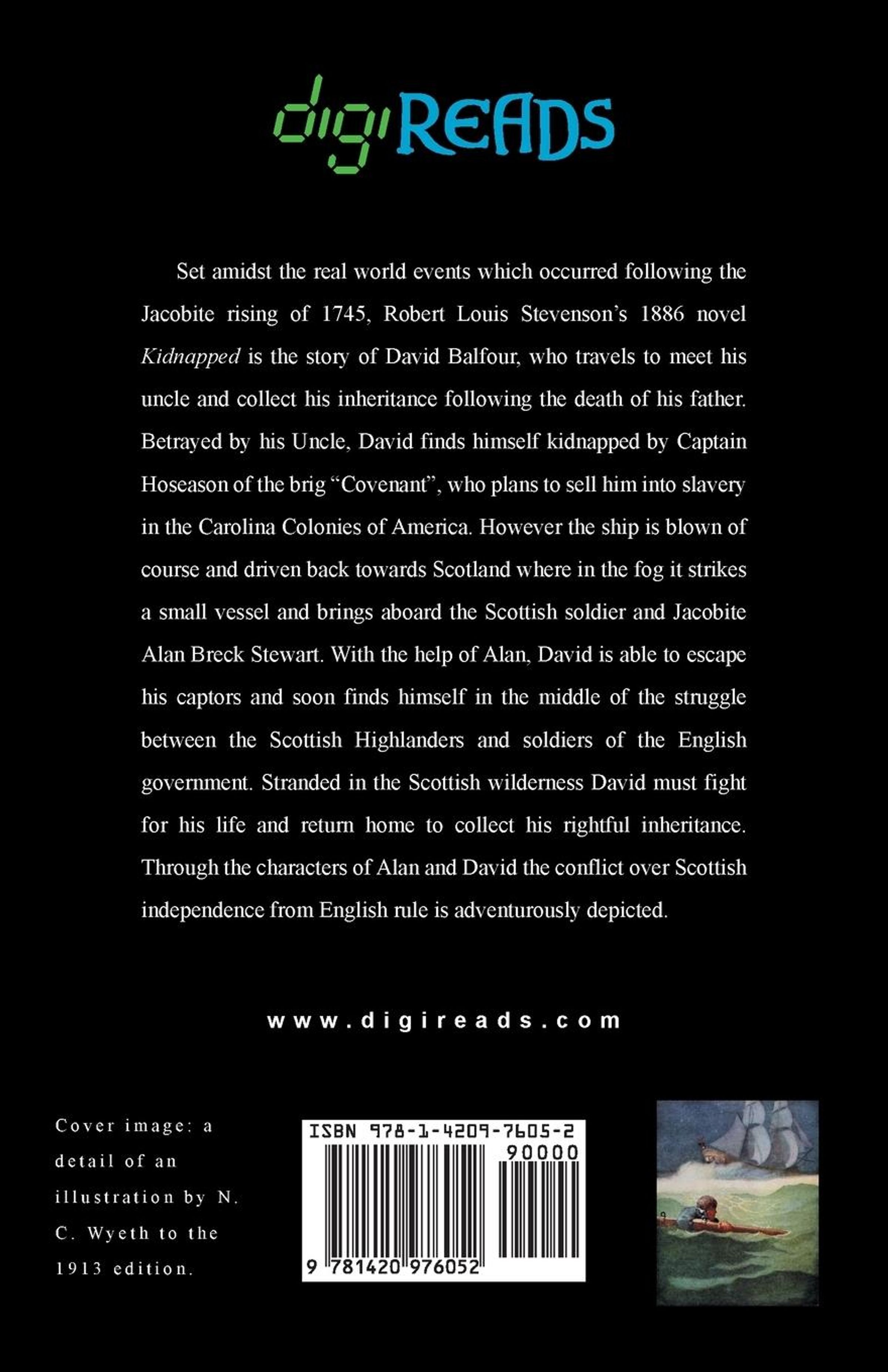Set amidst the real world events which occurred following the Jacobite rising of 1745, Robert Louis Stevenson's 1886 novel "Kidnapped" is the story of David Balfour, who travels to meet his uncle and collect his inheritance following the death of his father. Betrayed by his Uncle, David finds himself kidnapped by Captain Hoseason of the brig "Covenant", who plans to sell him into slavery in the Carolina Colonies of America. However the ship is blown of course and driven back towards Scotland where in the fog it strikes a small vessel and brings aboard the Scottish soldier and Jacobite Alan Breck Stewart. With the help of Alan, David is able to escape his captors and soon finds himself in the middle of the struggle between the Scottish Highlanders and soldiers of the English government. Stranded in the Scottish wilderness David must fight for his life and return home to collect his rightful inheritance. Through the characters of Alan and David the conflict over Scottish independence from English rule is adventurously depicted. This edition is printed on premium acid-free paper.