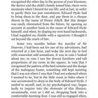 'He put the glass to his lips, and drank at one gulp. A cry followed; he reeled, staggered, clutched at the table and held on, staring with injected eyes, gasping with open mouth; and as I looked there came, I thought, a change...'