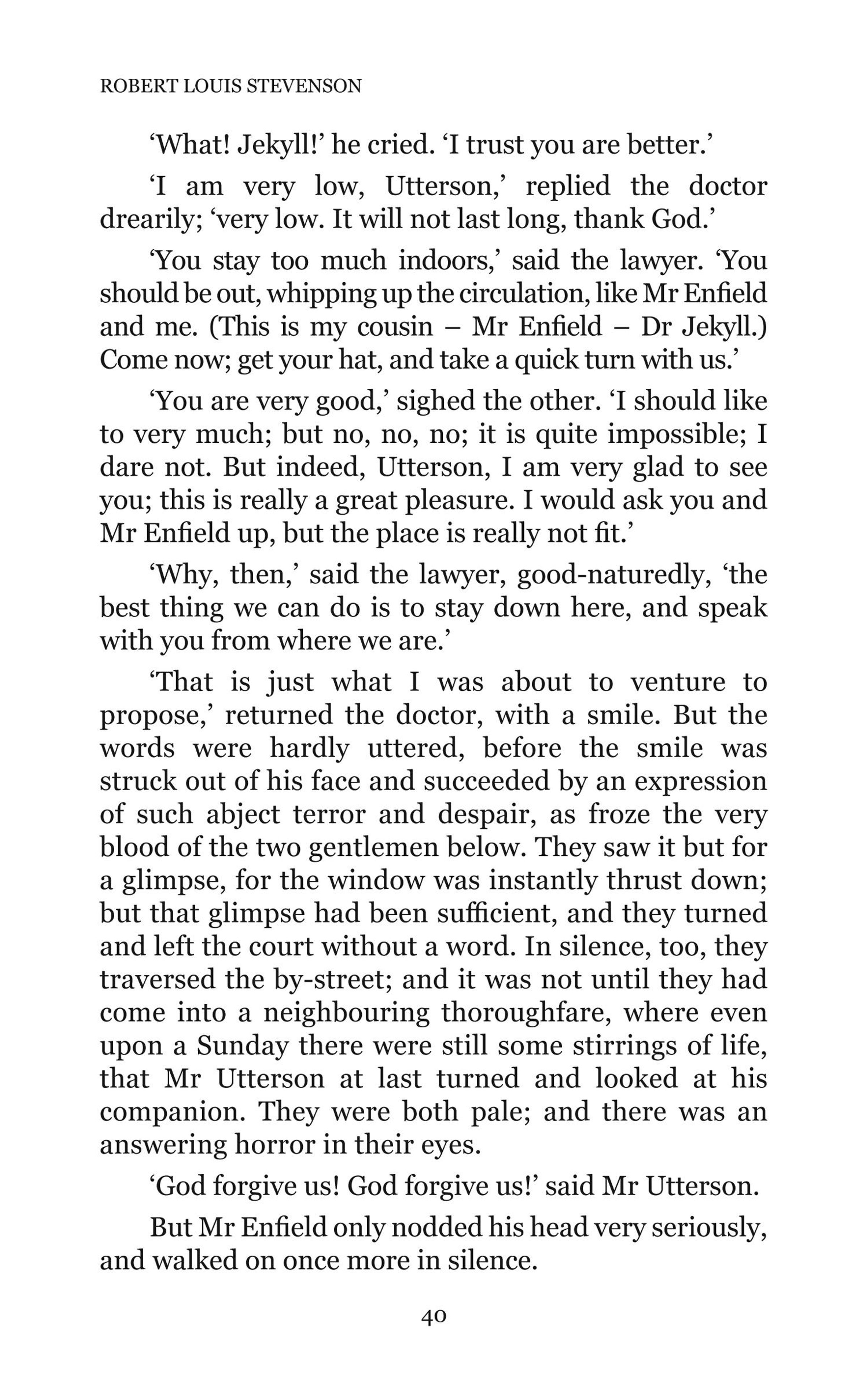 Robert Louis Stevenson's 1886 novel, with its concern with doubles and the 'dual nature of man', takes the reader into the darker regions of late Victorian London, as Utterson begins to unravel the mystery and confront the horror of Hyde's true identity.