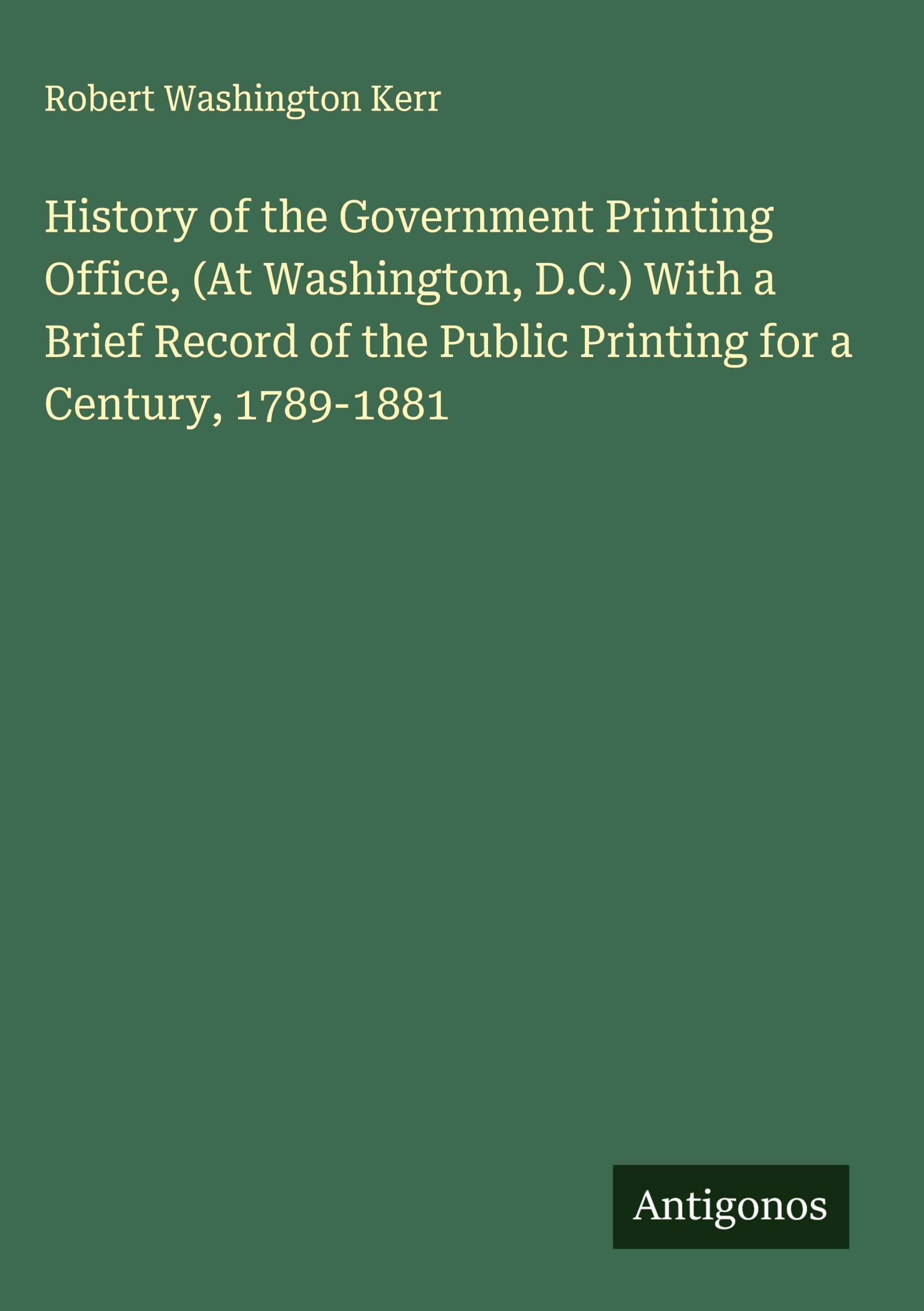 Robert Washington Kerr: History of the Government Printing Office, (At Washington, D.C.) With a Brief Record of..., Gebunden
