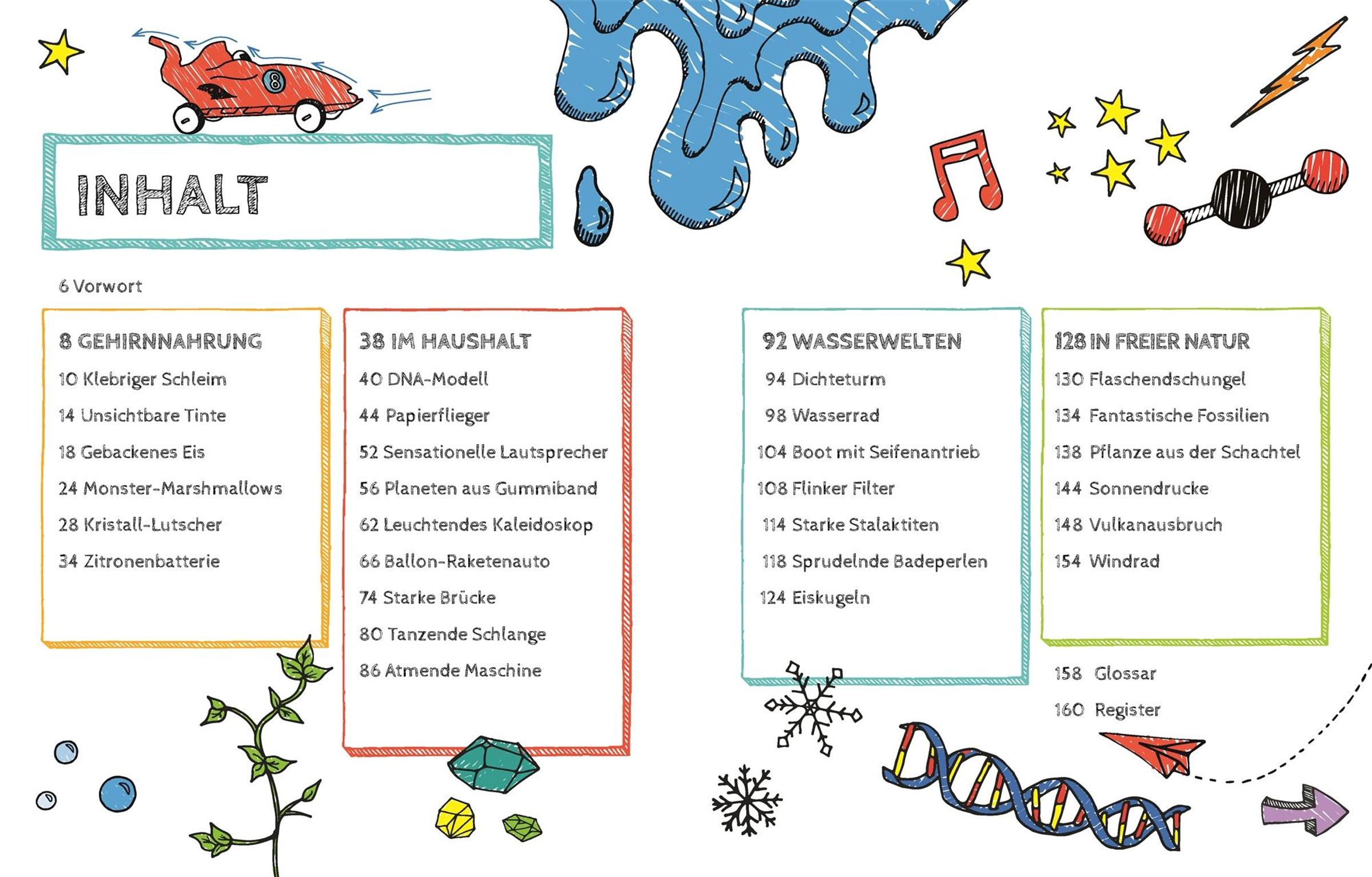 Verwandelt euer Kinderzimmer in ein richtiges Labor! Die anschaulichen und einfachen Anleitungen sowie die zahlreichen genialen Fakten begleiten euch durch wissenschaftliche Phänomene, die euch zum Staunen bringen. Dabei gilt: Probieren geht über Studieren! Wie es sich für richtige Forscher gehört, könnt ihr die Experimente je nach Lust und Laune abwandeln, denn nur so können Fortschritte entstehen und vielleicht entdeckt ihr sogar etwas ganz Neues? Lasst eurem Forscherdrang freien Lauf und taucht ein in die atemberaubende Welt der Naturwissenschaften.