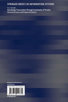 This book links knowledge management literature and information systems research to explore the process of knowledge preservation within a community of practice. It contributes to existing literature in different ways. First, it provides a conceptualization of the community knowledge preservation process. In contrast to previous knowledge management research, knowledge preservation is thus viewed as a process in its own right rather than an integral part of knowledge creation and sharing. Furthermore, the book also investigates how communities of practice preserve knowledge, by identifying the main mechanisms and tools enabling members to select, store and actualize the explicit and tacit forms of collective knowledge. More in general, the book presents guidance on how to use communities of practice to ensure the preservation of knowledge in development processes, for individuals and organizations alike.