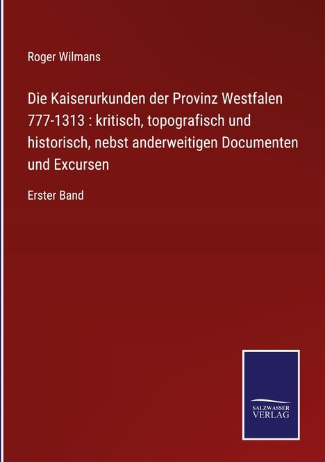 Roger Wilmans: Die Kaiserurkunden der Provinz Westfalen 777-1313 : kritisch, topografisch und historisch, nebst..., Gebunden