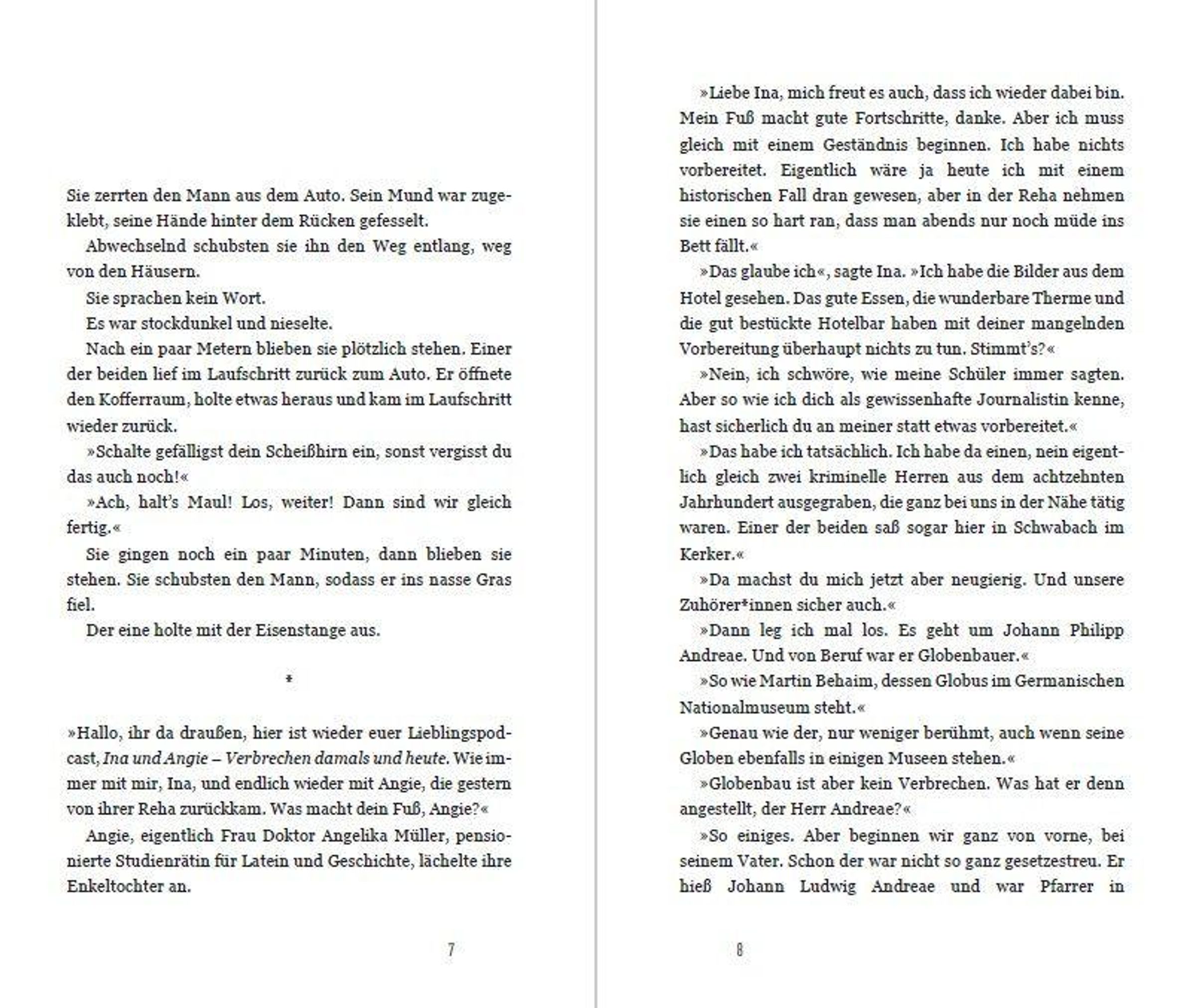 Ballwieser & Rinkes -- die Spezialisten für humorvolle Frankenkrimis melden sich mit einem rasanten neuen Fall um ein historisches Verbrechen und eine Podcast-Schatzsuche zurück! In ihrem beliebten True-Crime-Podcast berichten Ina, angehende Journalistin, und ihre Großmutter Angie, eine pensionierte Geschichtslehrerin, regelmäßig über historische und zeitgenössische Kriminalfälle. Die neueste Ausgabe beschäftigt sich mit Johann Philipp Andreae, einem zwielichtigen Globenbauer, der 1760 in einem Schwabacher Kerker starb. Für die beiden Podcasterinnen zuerst nicht erklärbar, kommt es bald zu einem Social-Media-Hype um einen angeblichen Andreae-Schatz, der schnell Ausmaße annimmt, die an die Ereignisse rund um den >>Drachenlord<< denken lassen. Nach einigen merkwürdigen Unfällen ist schnell vom >>Fluch des Globenbauers<< die Rede. Als dann noch ein Toter auftaucht, stecken Großmutter und Enkelin tiefer in einem True Crime, als ihnen lieb ist ...