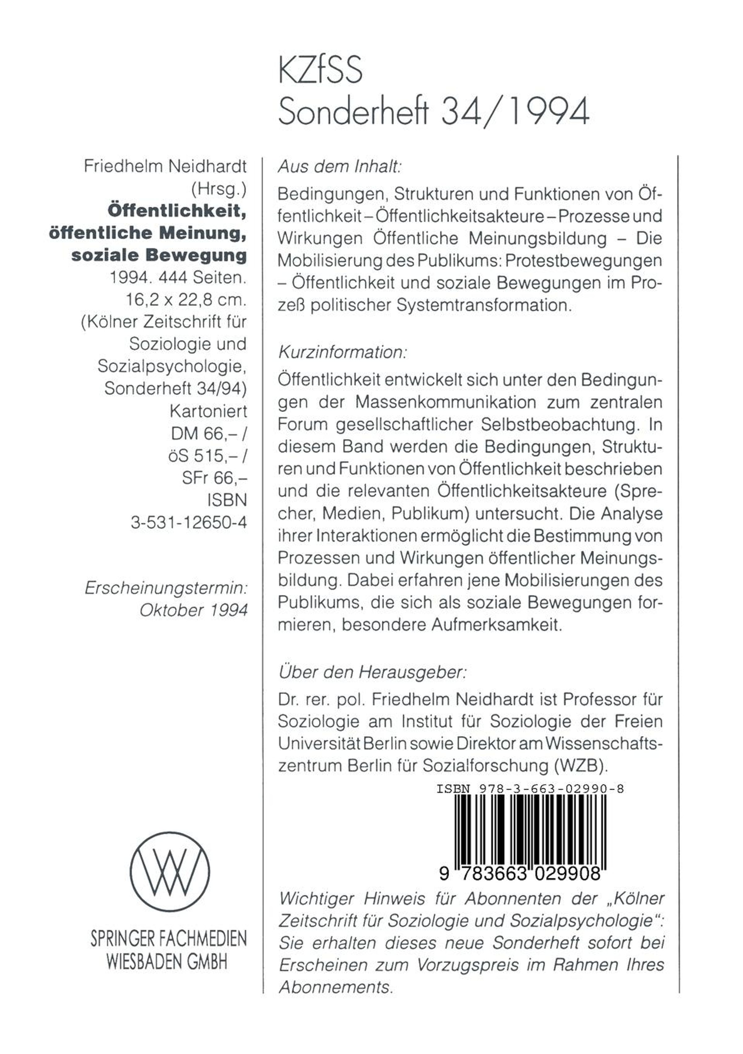 - VS Verlag für Sozialwissenschaften, 01/1994