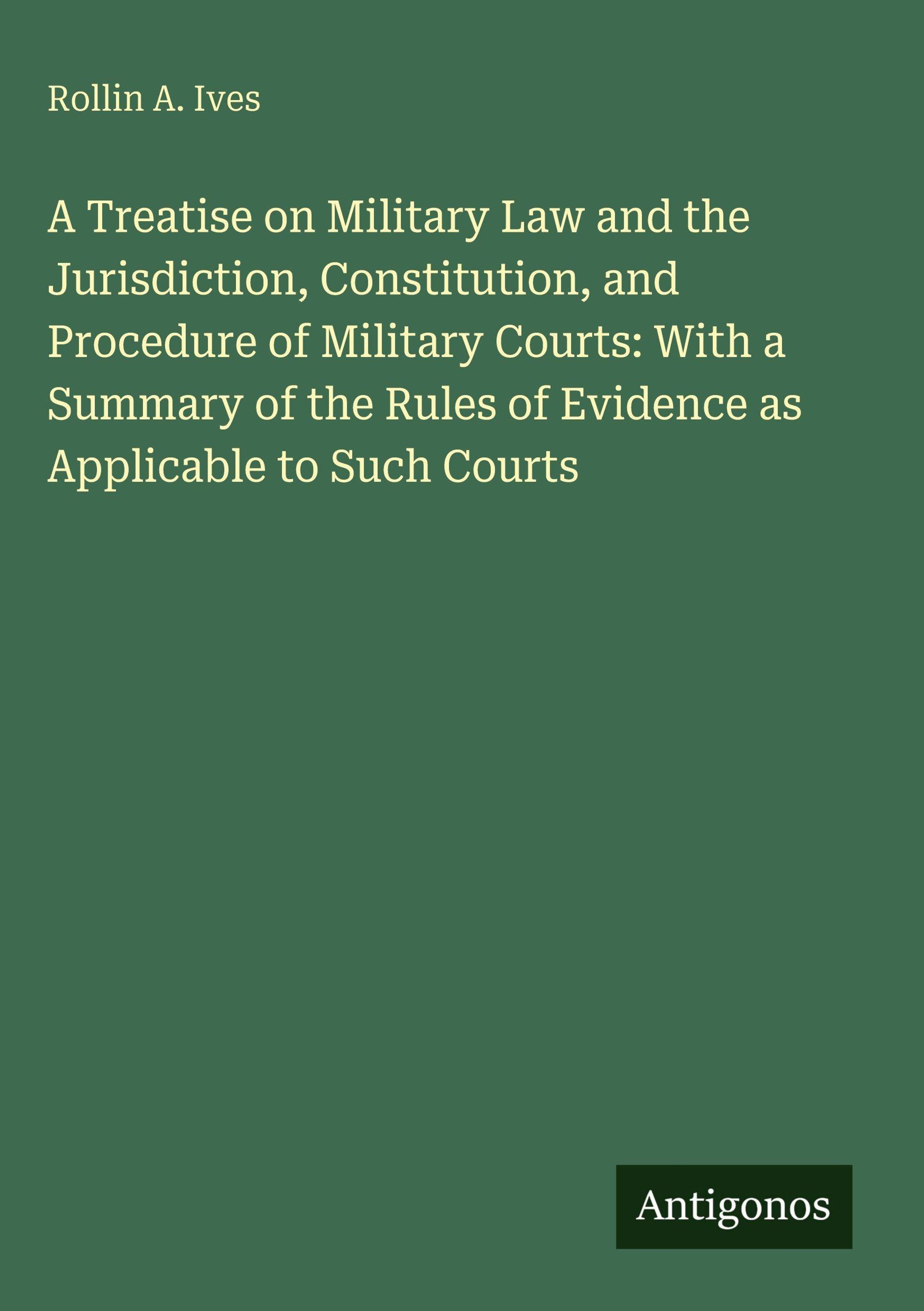 Rollin A. Ives: A Treatise on Military Law and the Jurisdiction, Constitution, and Procedure of Military Courts:..., Gebunden