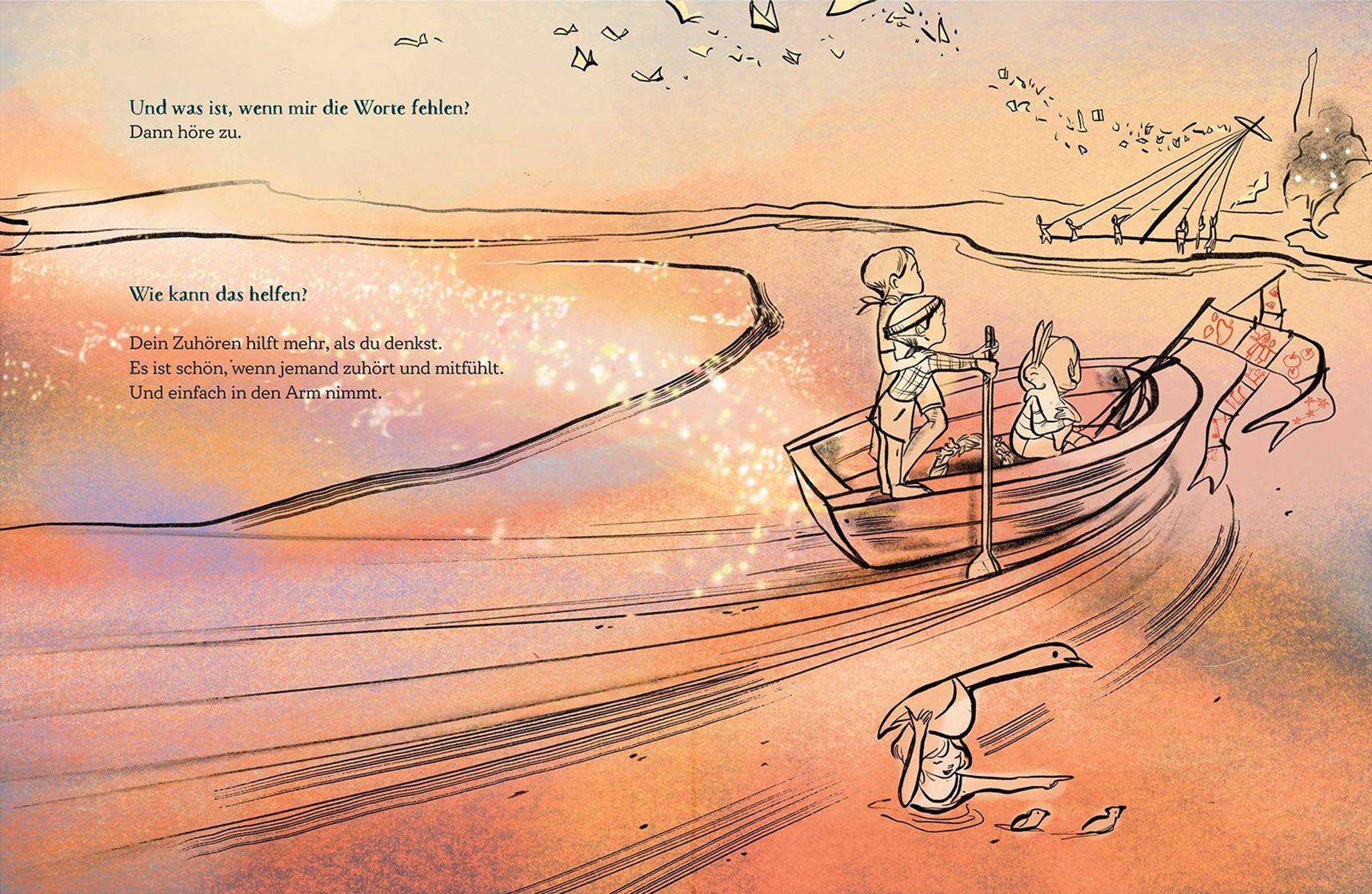In einer dunklen Zeit beobachtet ein Kind die Welt um sich herum. Es fühlt sich machtlos gegenüber Einsamkeit, Missgunst und Streit. Doch dann entdeckt es die Kraft seines inneren Lichts. Mit liebevollen Worten und kleinen Gesten bringt es die Menschen wieder zusammen und entfacht so ein großes Leuchten.