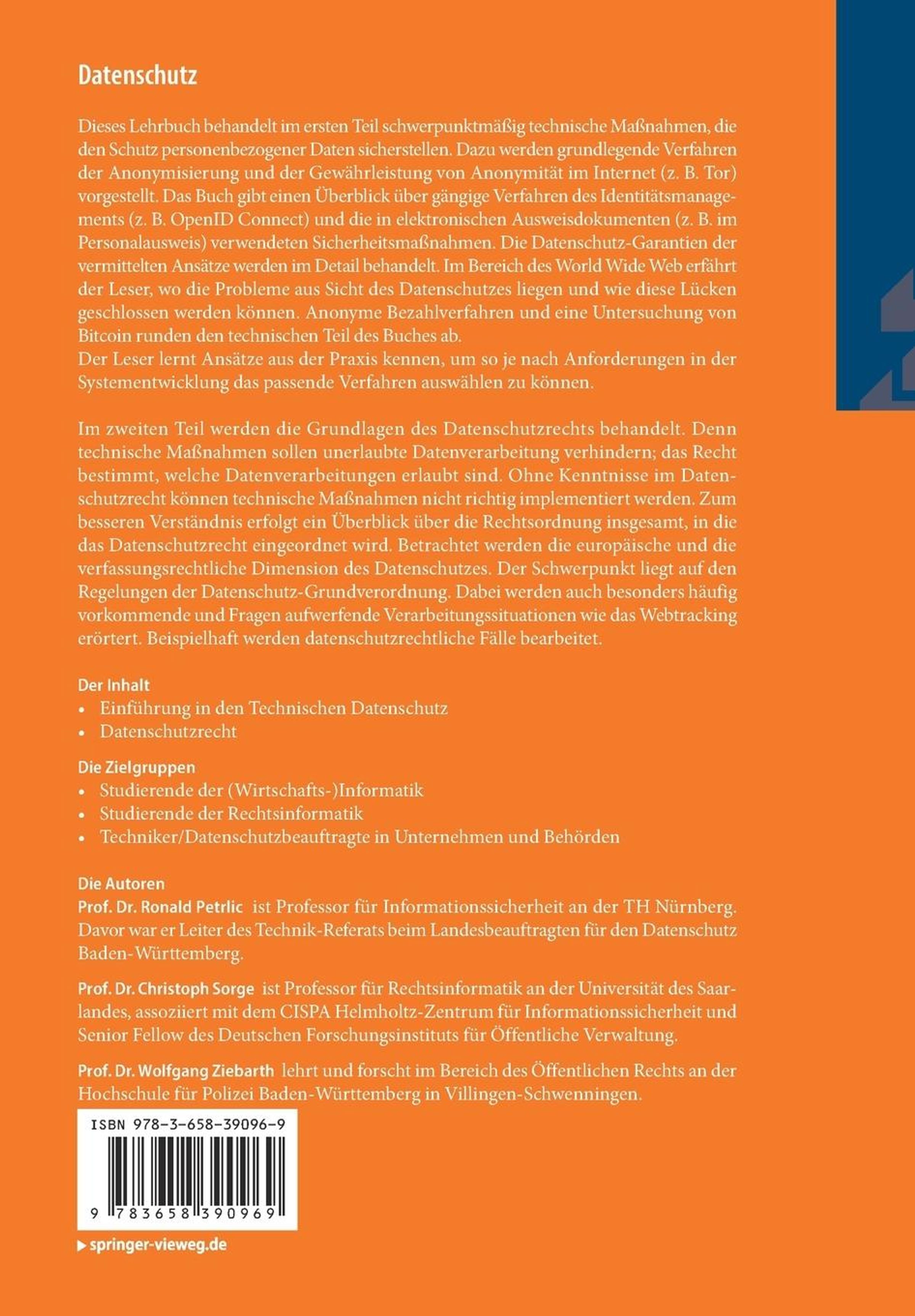 Dieses Lehrbuch behandelt im ersten Teil schwerpunktmäßig technische Maßnahmen, die den Schutz personenbezogener Daten sicherstellen. Dazu werden grundlegende Verfahren der Anonymisierung und der Gewährleistung von Anonymität im Internet (z. B. Tor) vorgestellt. Das Buch gibt einen Überblick über gängige Verfahren des Identitätsmanagements (z. B. OpenID Connect) und die in elektronischen Ausweisdokumenten (z. B. im Personalausweis) verwendeten Sicherheitsmaßnahmen. Die Datenschutz-Garantien der vermittelten Ansätze werden im Detail behandelt. Im Bereich des World Wide Web erfährt der Leser, wo die Probleme aus Sicht des Datenschutzes liegen und wie diese Lücken geschlossen werden können. Anonyme Bezahlverfahren und eine Untersuchung von Bitcoin runden den technischen Teil des Buches ab. Der Leser lernt Ansätze aus der Praxis kennen, um so je nach Anforderungen in der Systementwicklung das passende Verfahren auswählen zu können. Im zweiten Teil werden die Grundlagen des Datenschutzrechts behandelt. Denn technische Maßnahmen sollen unerlaubte Datenverarbeitung verhindern; das Recht bestimmt, welche Datenverarbeitungen erlaubt sind. Ohne Kenntnisse im Datenschutzrecht können technische Maßnahmen nicht richtig implementiert werden. Zum besseren Verständnis erfolgt ein Überblick über die Rechtsordnung insgesamt, in die das Datenschutzrecht eingeordnet wird. Betrachtet werden die europäische und die verfassungsrechtliche Dimension des Datenschutzes. Der Schwerpunkt liegt auf den Regelungen der Datenschutz-Grundverordnung. Dabei werden auch besonders häufig vorkommende und Fragen aufwerfende Verarbeitungssituationen wie das Webtracking erörtert. Beispielhaft werden datenschutzrechtliche Fälle bearbeitet.