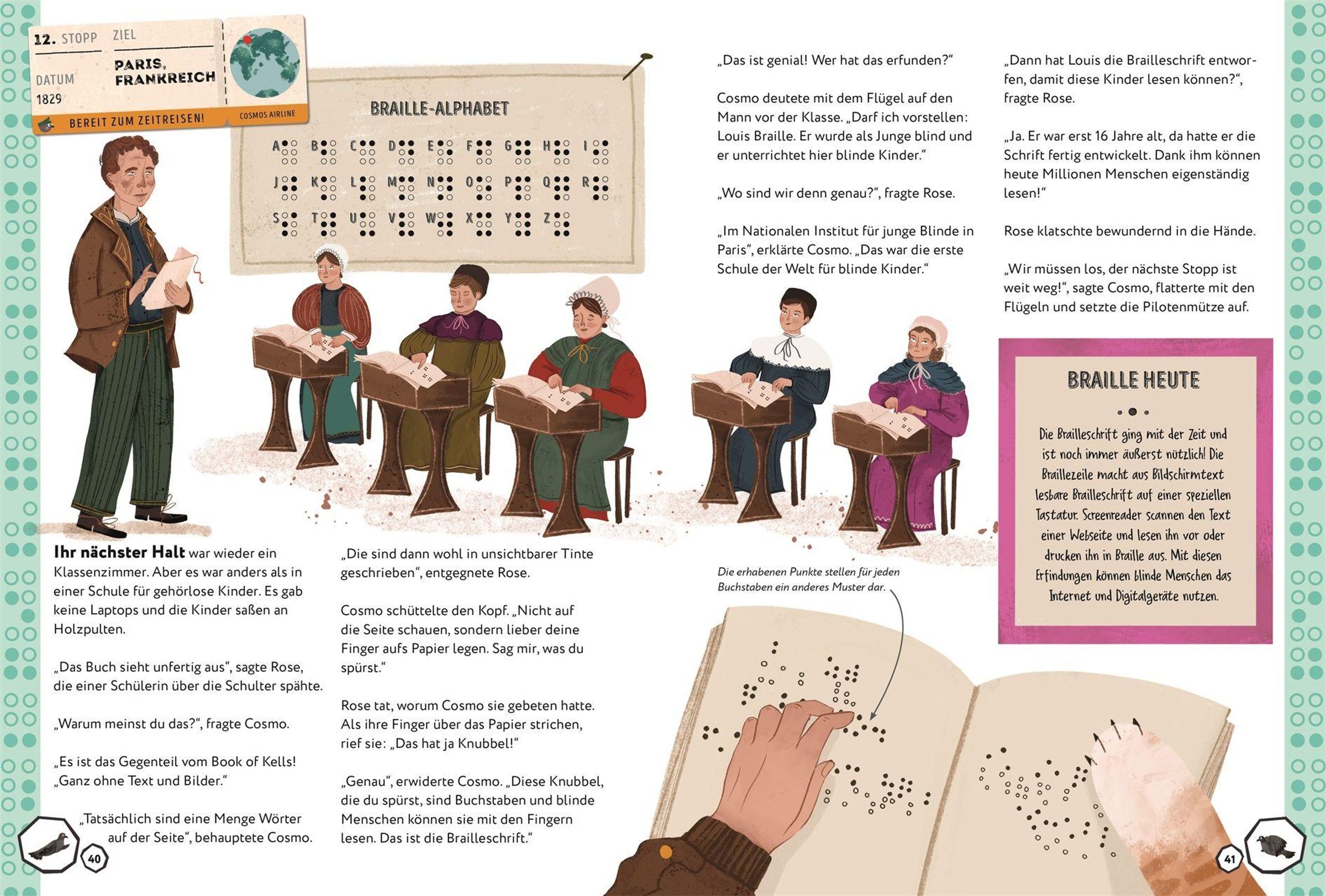 ¿ Visuell:Lebhafte Illustrationen nehmen Lesende mit auf eine Zeitreise durch ferne Welten