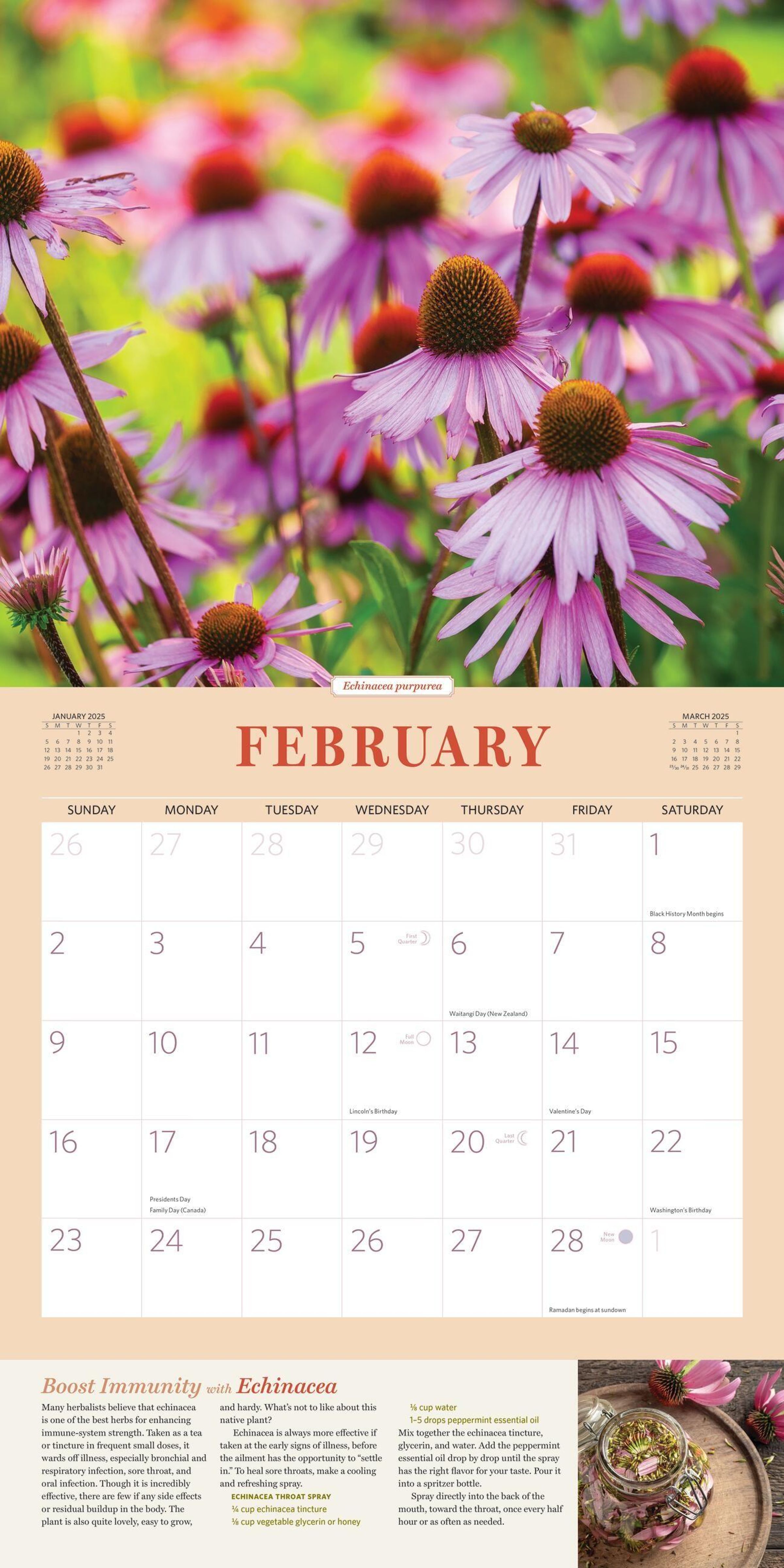 - **HEALTHY ALL YEAR LONG:**Each month features a beautiful photo of an herb accompanied by tips for their use: boost immunity with echinacea, reduce fever with elder, soothe a sore throat with sage, and more!