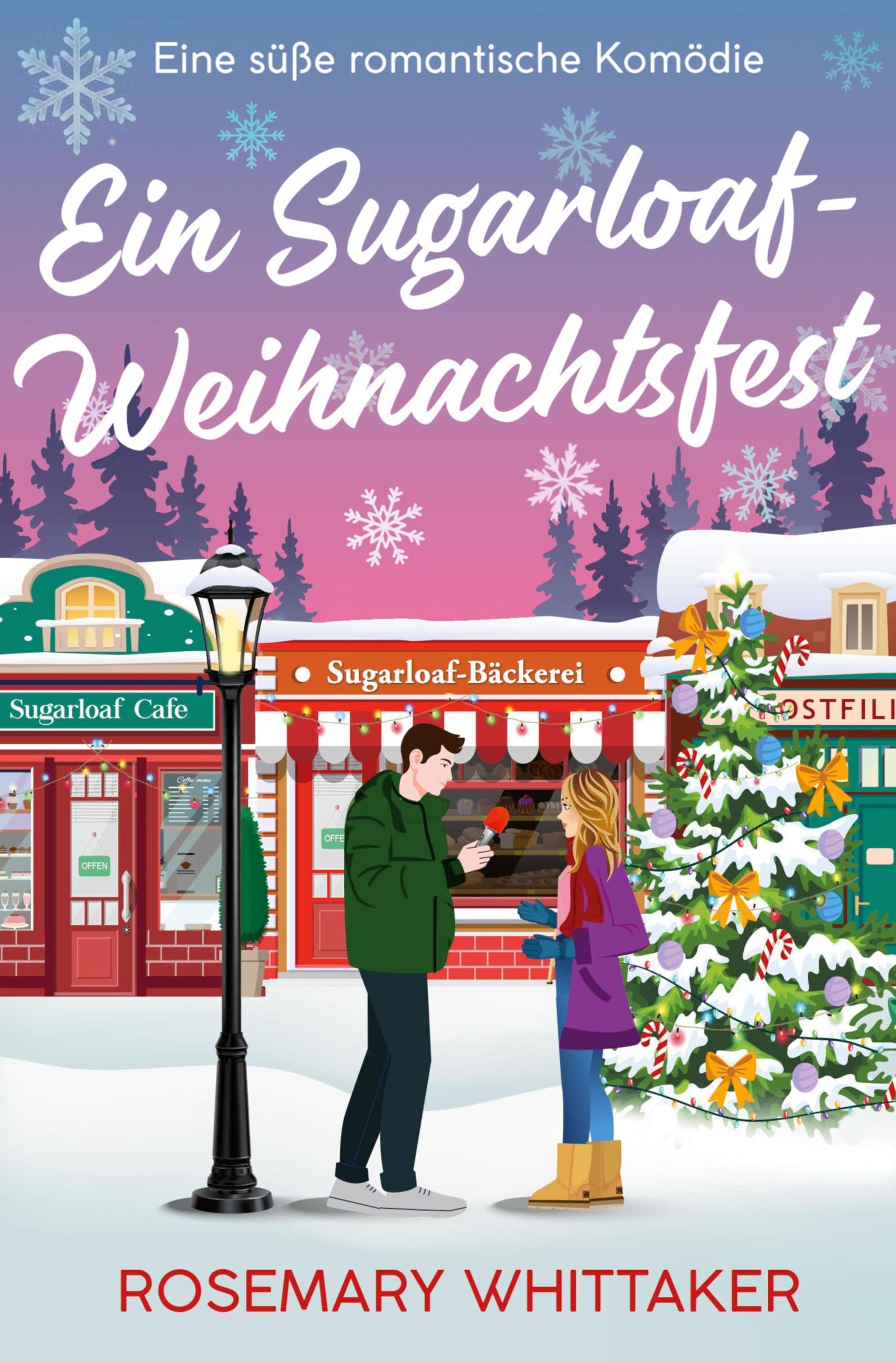 "Ein Sugarloaf-Weihnachtsfest" von Rosemary Whittaker. Winterliche Szene mit dekoriertem Baum und Café., Buch