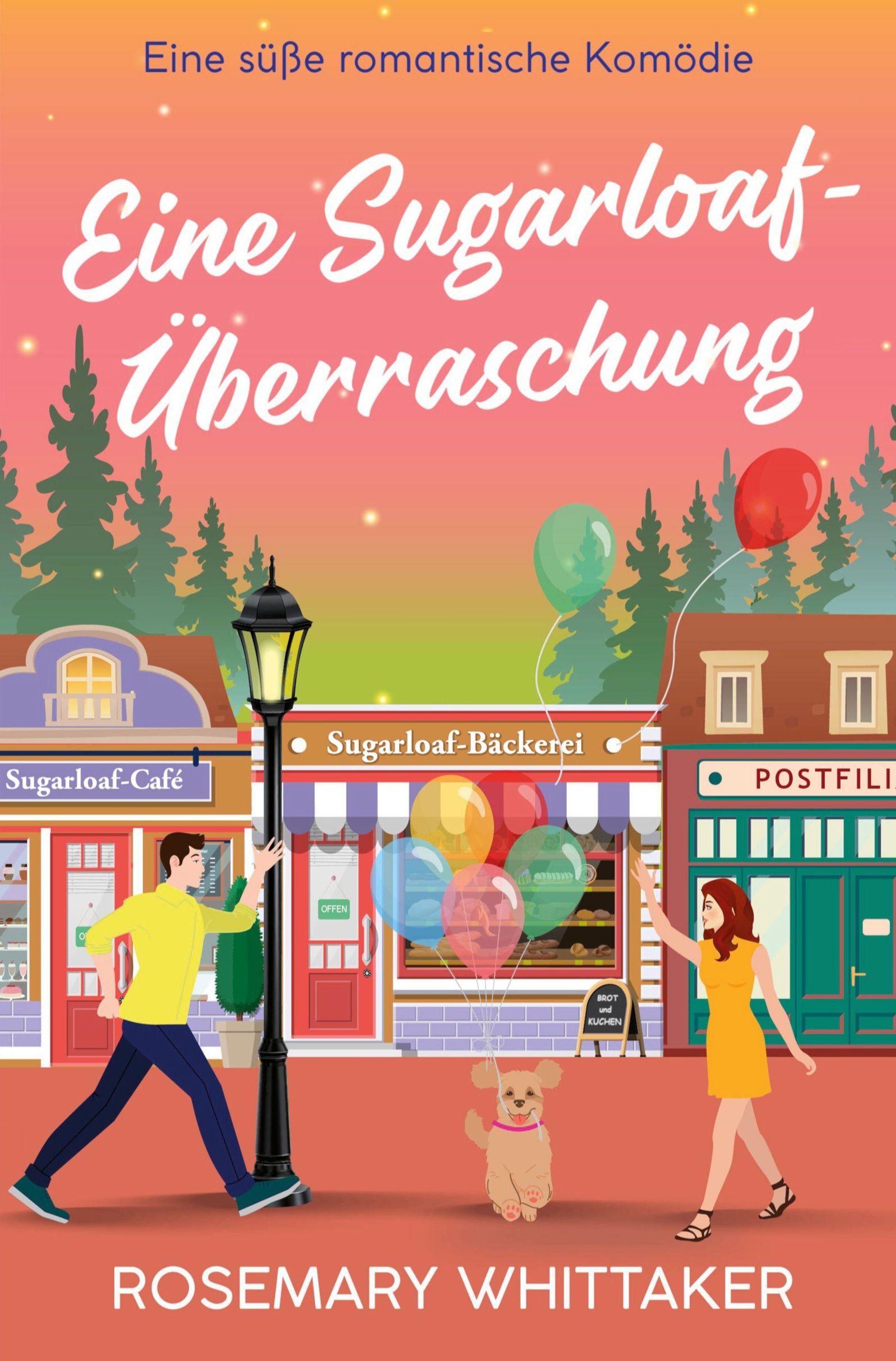 "Eine süße romantische Komödie: Eine Sugarloaf-Überraschung. Geschäftsfassaden mit Cafe, Bäckerei, und Post, Menschen mit Hund.", Buch