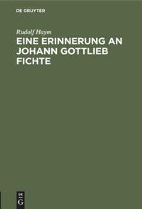 Rudolf Haym: Eine Erinnerung an Johann Gottlieb Fichte, Gebunden