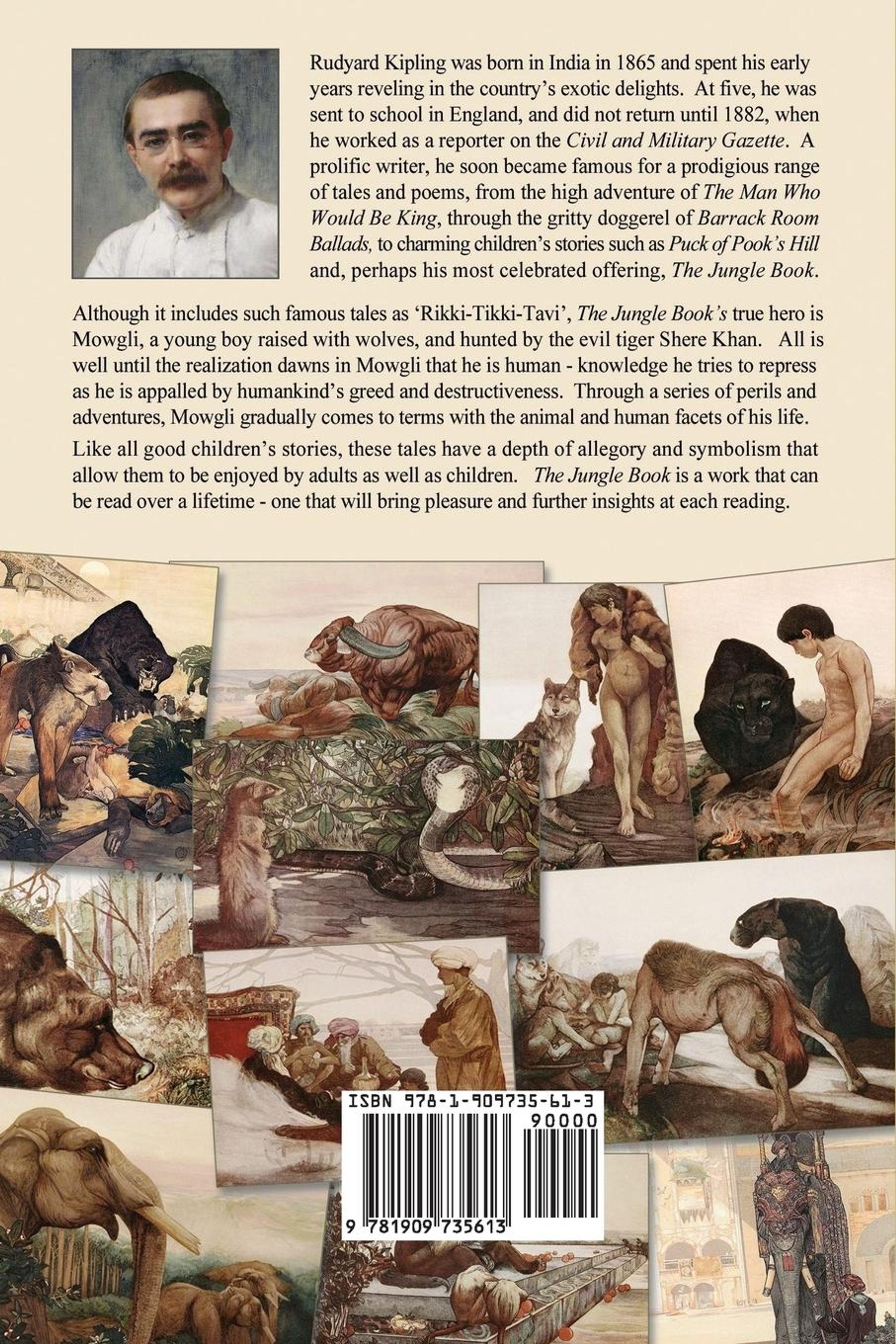 Rudyard Kipling was born in India in 1865 and spent his early years reveling in the country's exotic delights. At five he was sent to school in England, and did not returned until 1882, when he worked as a reporter on the Civil and Military Gazette. A prolific writer, he soon became famous for a prodigious range of tales and poems, from the high adventure of The Man Who Would Be King, through the gritty doggerel of Barrack Room Ballads to charming children's story such as Puck of Pook's Hill and, perhaps his most celebrated offering, The Jungle Book. Although it includes such famous tales as 'Rikki-Tikki-Tavi' The Jungle Book's true hero is Mowgli, a young boy raised with wolves, and hunted by the evil tiger Shere Khan. All is well until the realization dawns in Mowgli that he is human - knowledge he tries to repress as he is appalled by humankind's greed and destructiveness. Through a series of perils and adventures, Mowgli gradually comes to terms with the animal and human facets of his life. Like all good children's stories, these tales have a depth of allegory and symbolism that allows them to be enjoyed by adults as well as children. This edition includes The Second Jungle Book (hence the title: The Jungle Books) and completes the story of Mowgli. It is a work that can be read throughout a lifetime - one that will bring pleasure and further insights at each reading.