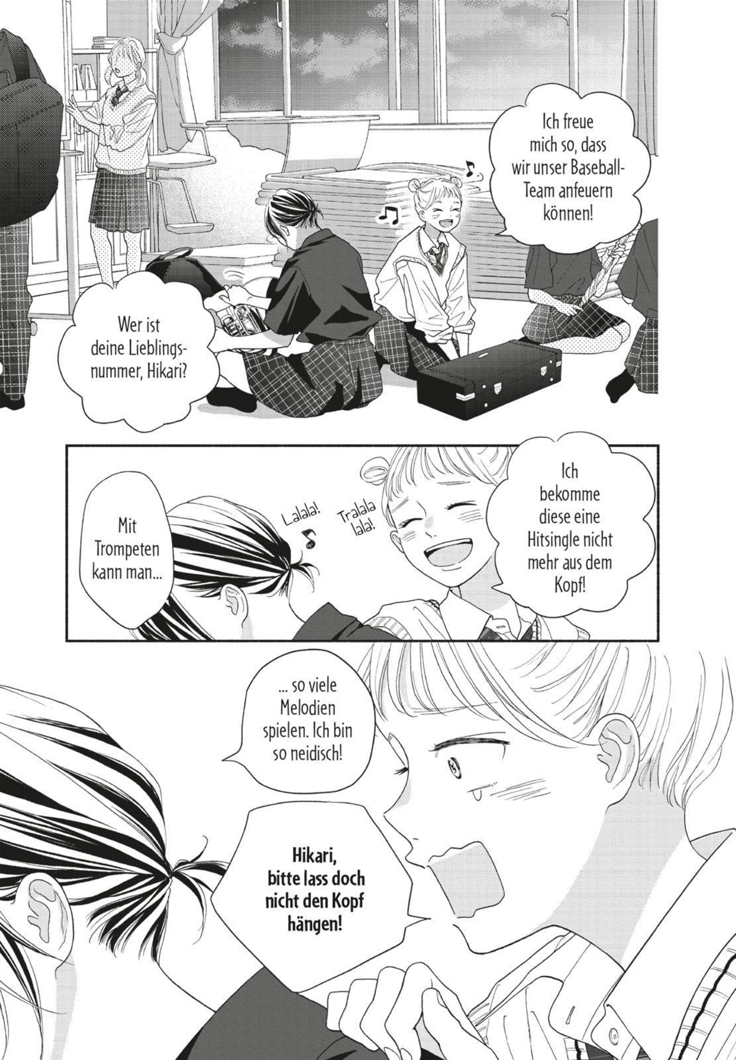 Hikari ist völlig durcheinander. Ihr Schwarm Ohtani vermutet, sie hätte Gefühle für Asagiri - und völlig unerwartet gesteht dieser Hikari kurz darauf tatsächlich seine Liebe! Verwirrt und überfordert kann sie sich kaum auf die Proben der Musik-AG konzentrieren. Dabei findet in nur drei Tagen das große Baseballmatch statt, bei dem sie Ohtani und sein Team anfeuern soll...! Zwischen Freundschaft und Herzklopfen müssen die vier Jugendlichen herausfinden, wem ihr Herz wirklich gehört...