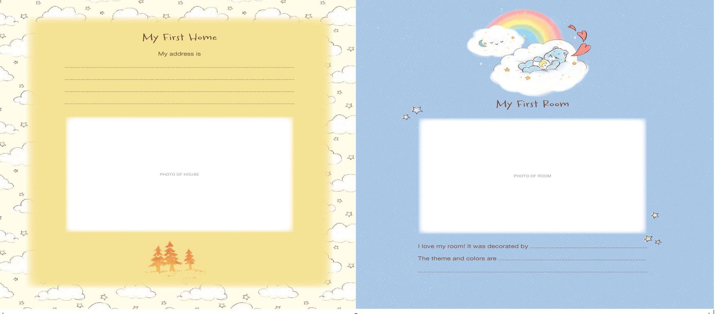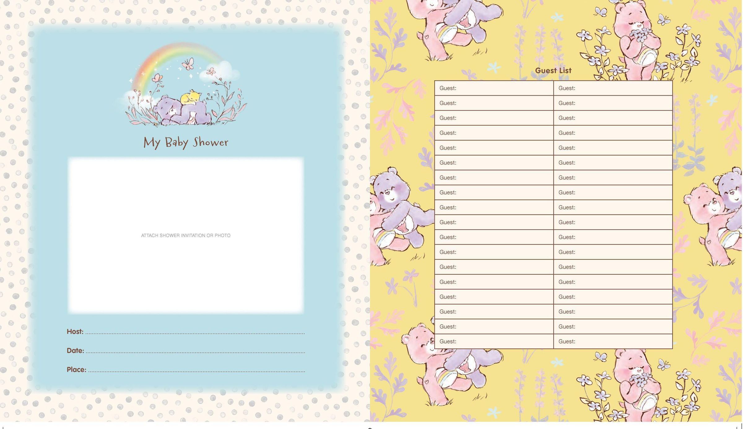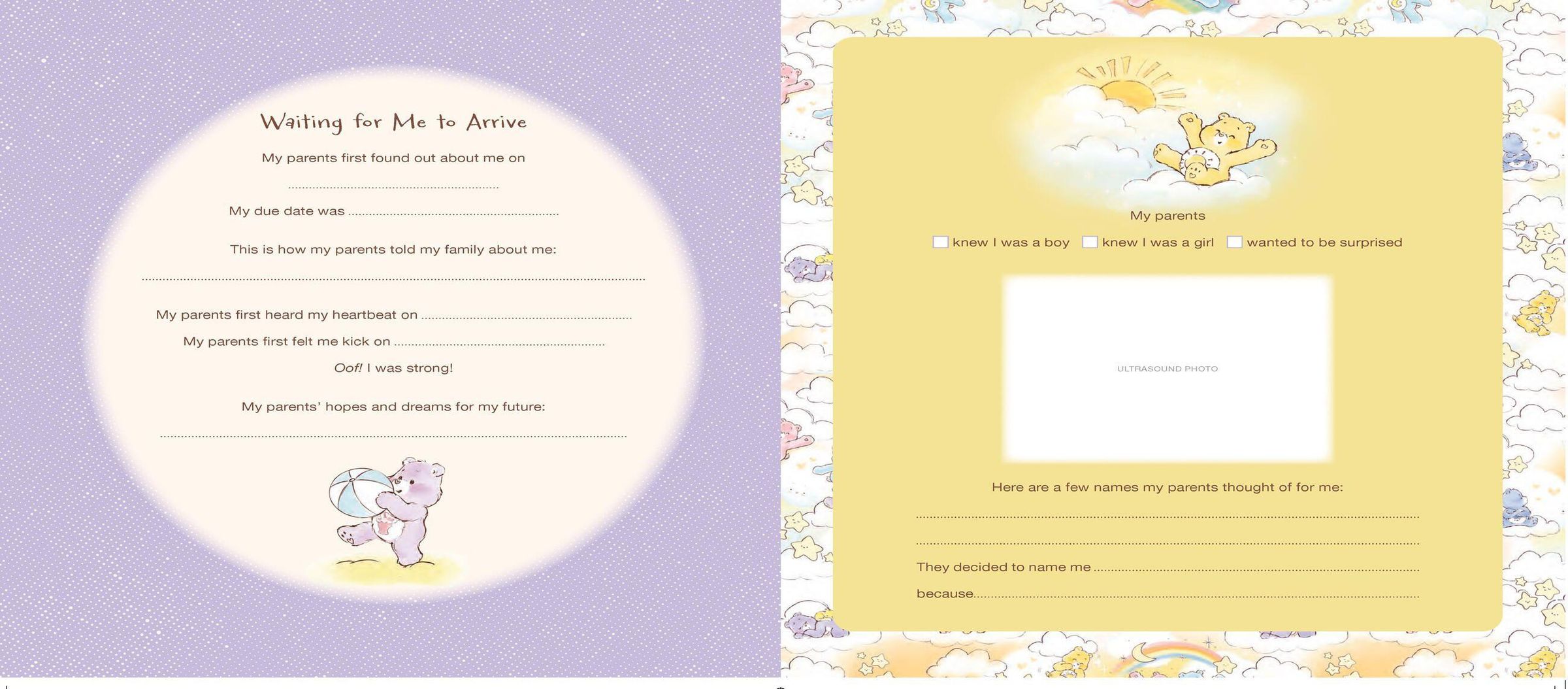 "Care Bears baby BOOK. My First Three Years." Ein rosa Bär bläst Seifenblasen, umgeben von einem Regenbogen auf Wolken., Buch
