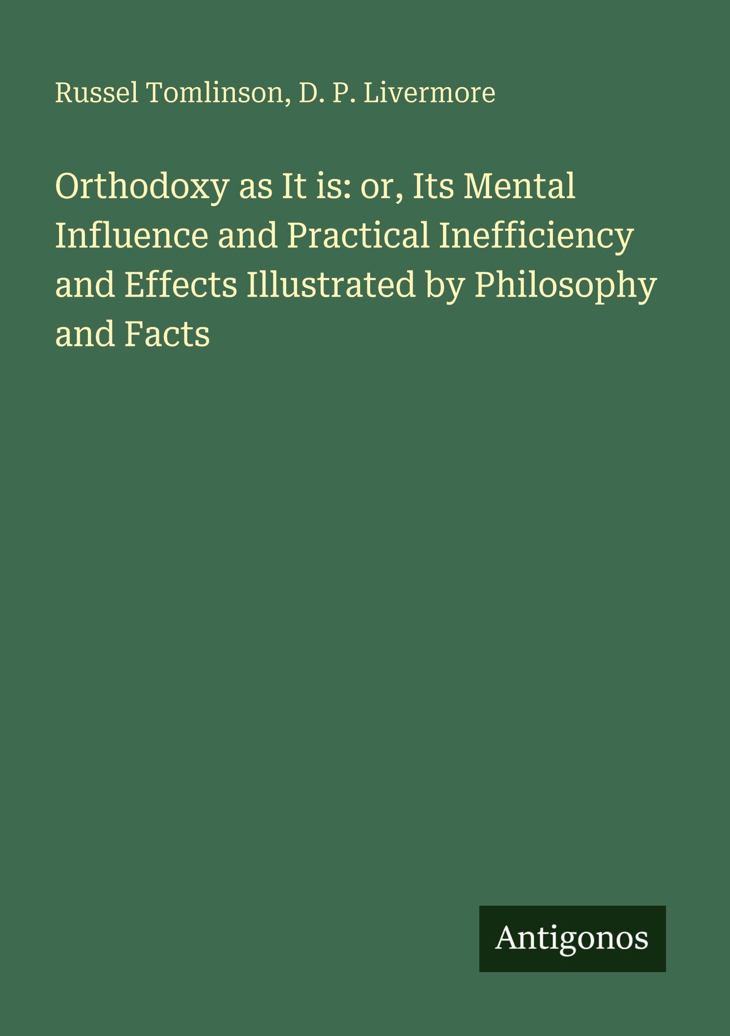 Russel Tomlinson: Orthodoxy as It is: or, Its Mental Influence and Practical Inefficiency and Effects..., Kartoniert / Broschiert
