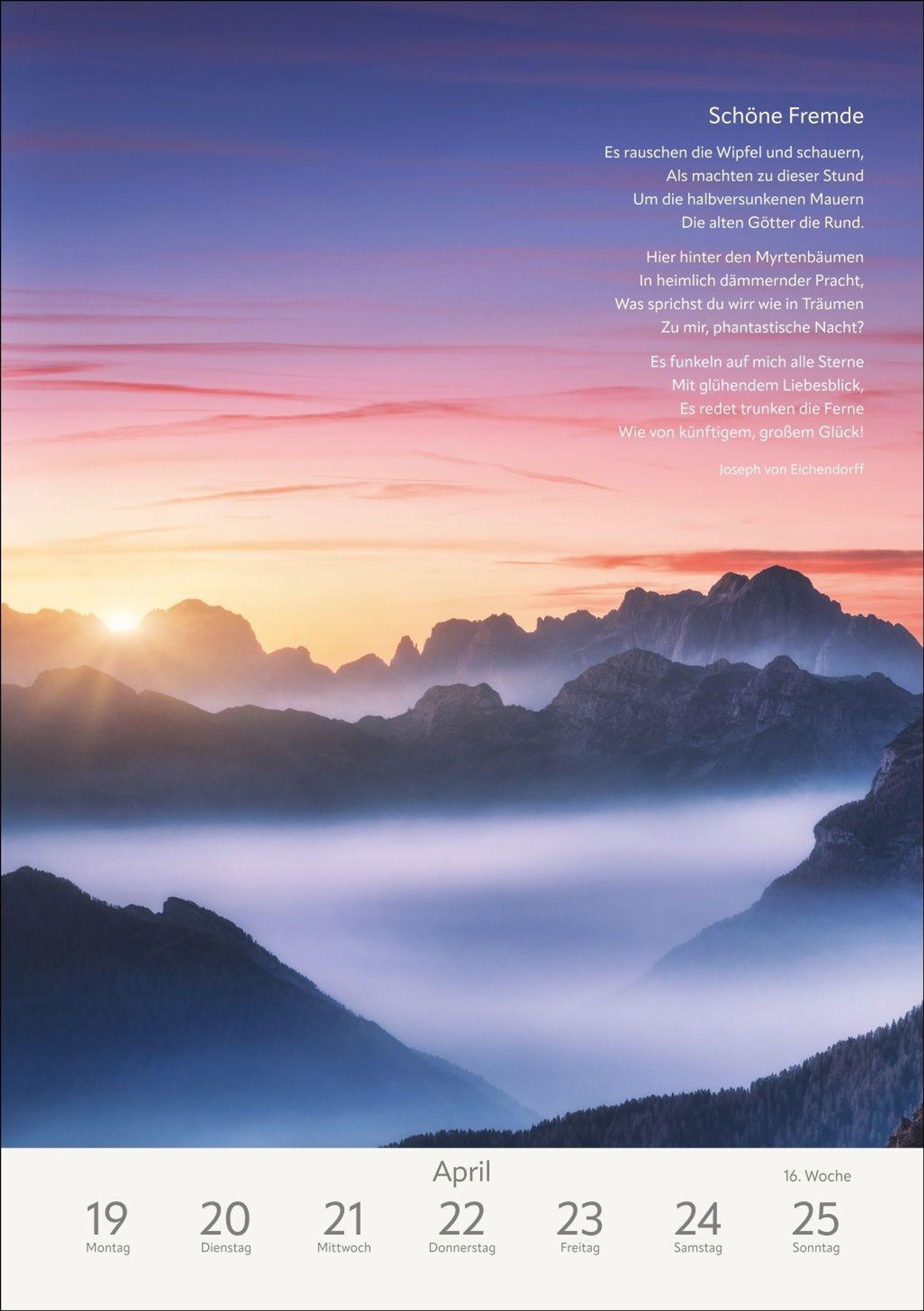- Jede Woche neue Natur- und Landschaftsaufnahmen mit literarischen Zitaten in einem Foto-Wandkalender