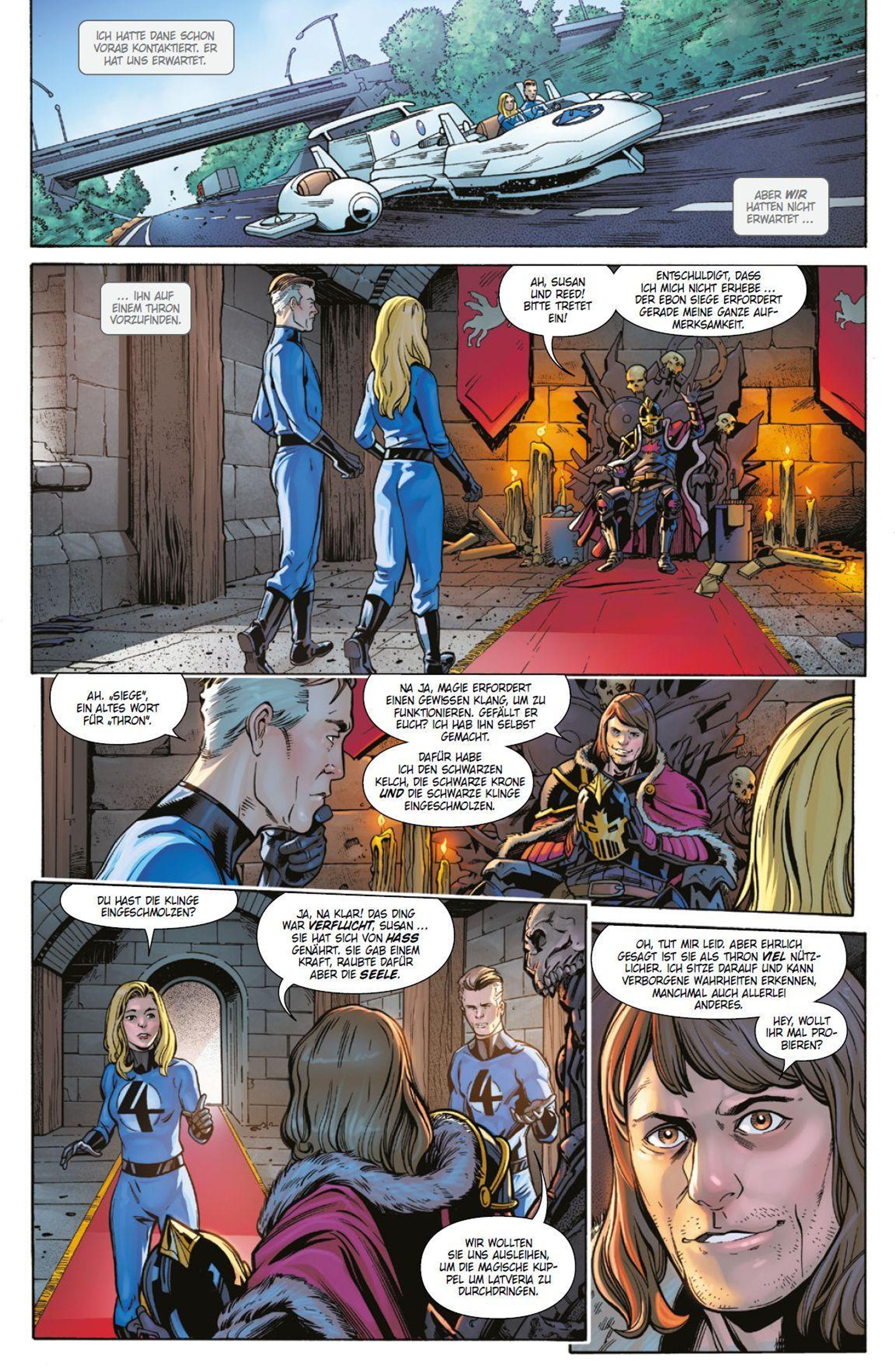 IM ZEICHEN VON DOOM! Seit Dr. Doom den Titel Oberster Zauberer der Erde trägt, hat er sein Reich Latveria von der Außenwelt abgeschottet. Während sich Mr. Fantastic auf die Konsequenzen vorbereitet, ist ihm sein Erzfeind einen Schritt voraus. Als sich Doom zum Herrscher der Welt ausruft und Ben Grimm ungefragt einen lang gehegten Wunsch erfüllt, läuft die Uhr für die Fantastic Four unaufhaltsam ab. Denn der vermeintliche Gefallen entpuppt sich als ein zynischer Albtraum, der Marvels Superheldenfamilie mit ihrem Ende konfrontiert.