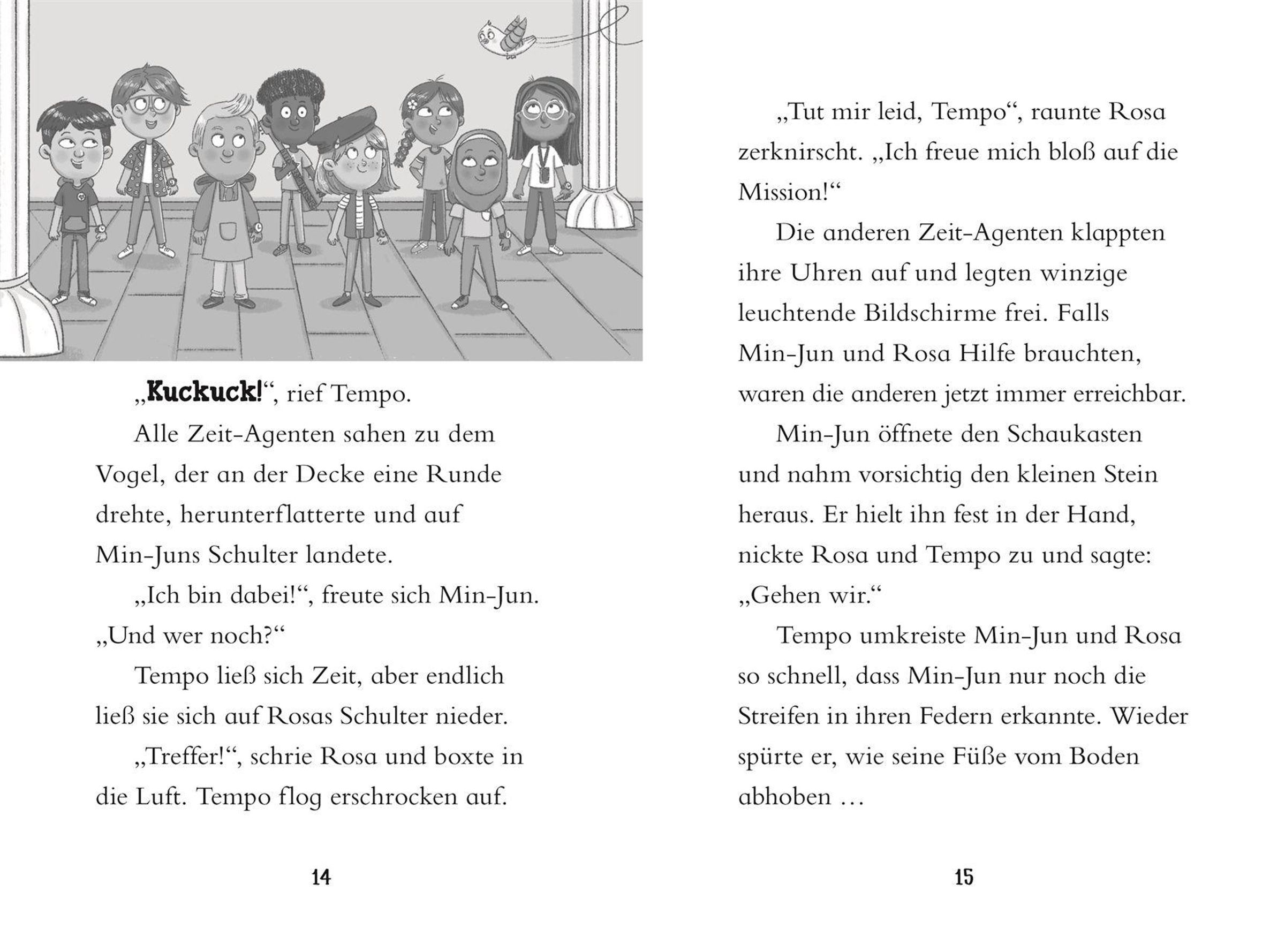 Wenn die Uhren rückwärts laufen, wissen die Zeit-Agenten: Ein neues Abenteuer ruft! In dieser fesselnden Kinderbuch-Reihe begleiten jungeLeser*innen ab 7 Jahren die Zeit-Agenten zu den bedeutendsten Momenten der Geschichte. Mit Mut und Geschick müssen die acht Kinder die fiesen Pläne von Bösewicht Mora durchkreuzen, der quer durch alle Jahrhunderte für Chaos sorgt. Jede Reise bietet Grundschulkindernfaszinierendes Geschichtswissen und ein actionreiches Katz-und-Maus-Spiel zwischen den Zeit-Agenten und Mora - unterstützt durchIllustrationen , einGlossar , das schwierige Begriffe erklärt, und ein Quiz , um gelerntes Wissen zu checken.