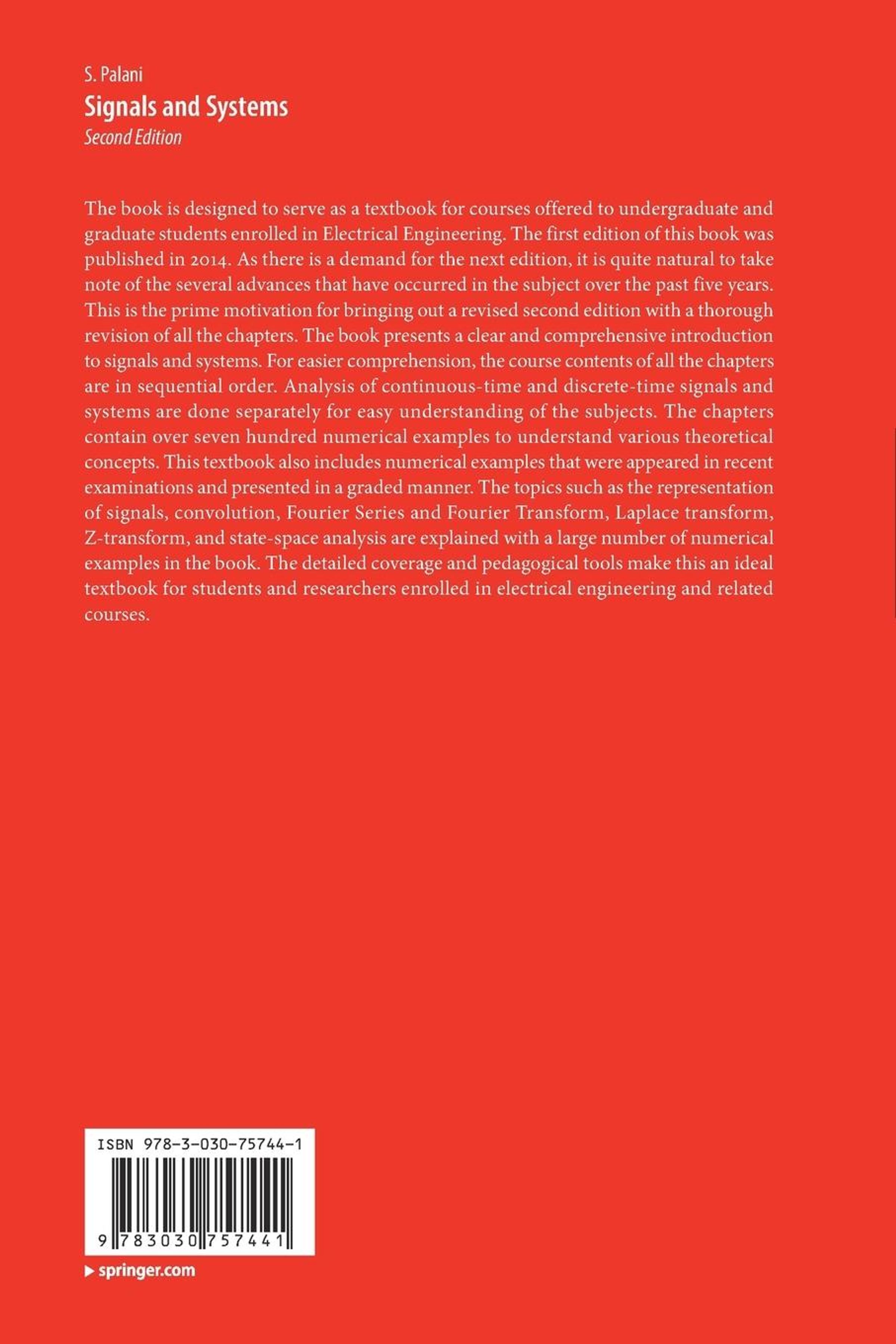 The book is designed to serve as a textbook for courses offered to undergraduate and graduate students enrolled in Electrical Engineering. The first edition of this book was published in 2014. As there is a demand for the next edition, it is quite natural to take note of the several advances that have occurred in the subject over the past five years. This is the prime motivation for bringing out a revised second edition with a thorough revision of all the chapters. The book presents a clear and comprehensive introduction to signals and systems. For easier comprehension, the course contents of all the chapters are in sequential order. Analysis of continuous-time and discrete-time signals and systems are done separately for easy understanding of the subjects. The chapters contain over seven hundred numerical examples to understand various theoretical concepts. This textbook also includes numerical examples that were appeared in recent examinations and presented in a graded manner. The topics such as the representation of signals, convolution, Fourier Series and Fourier Transform, Laplace transform, Z-transform, and state-space analysis are explained with a large number of numerical examples in the book. The detailed coverage and pedagogical tools make this an ideal textbook for students and researchers enrolled in electrical engineering and related courses.