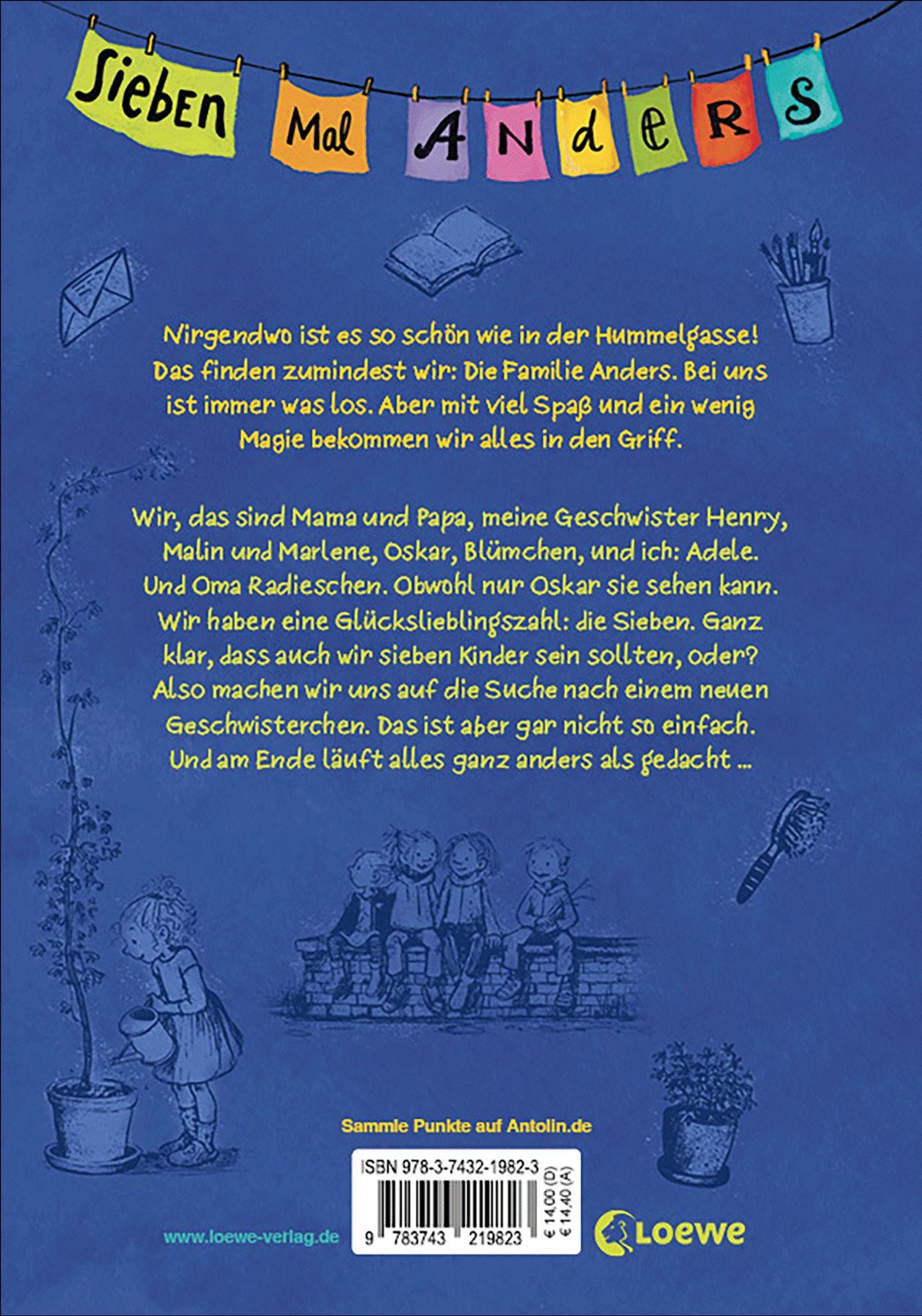 Adele und ihre fünf Geschwister wohnen in der Hummelgasse - in dem lustigsten Haus, das ihr je gesehen habt! Ihr Alltag ist ein einziges Abenteuer, aber mit ihrem Einfallsreichtum und ihren ganz besonderen Eigenschaften finden sie immer eine Lösung. Zum ganz großen Glück fehlt Familie Anders aber noch ein siebtes Kind. Kurzerhand nehmen Adele, Henry, die Zwillinge, Oskar und Blümchen die Sache in die Hand und machen sich auf die Suche nach einem neuen Geschwisterchen. Gut, dass sie in der Hummelgasse wohnen und viele Freunde haben, die ihnen helfen! Am Ende bekommen sie tatsächlich den kleinen Lu, aber ganz anders, als geplant ...