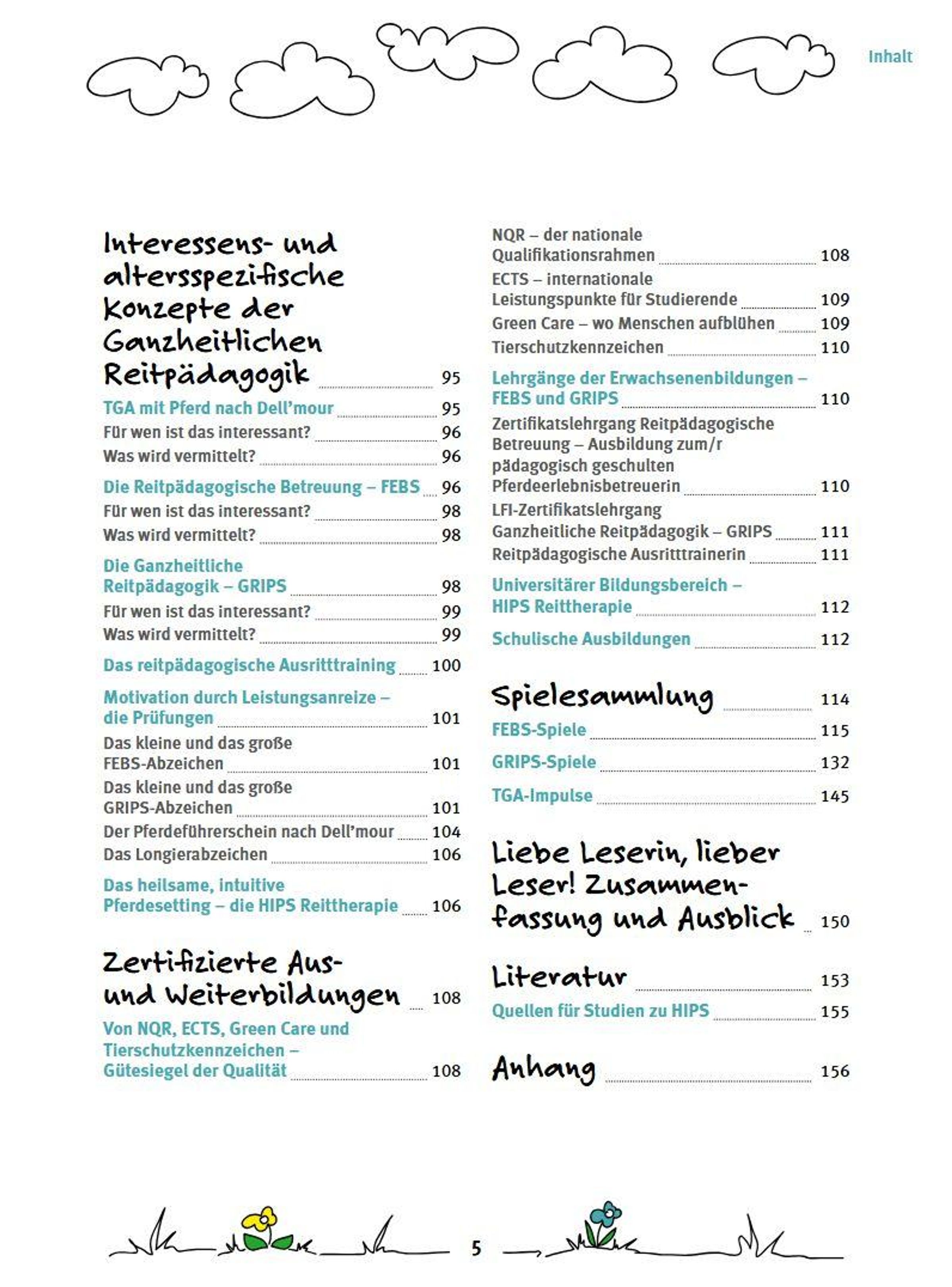 Die ganzheitliche Reitpädagogik nach Dell'mour stellt eine auf Vertrauen und Verständnis basierende Beziehung zwischen Mensch und Pferd in den Mittelpunkt und betont dabei die Bedeutung von Empathie, Achtsamkeit und Kommunikation im Umgang mit Pferden. Die Autorin hat dabei verschiedene Konzepte entwickelt: FEBS zur reitpädagogischen Betreuung von kleinen Kindern, GRIPS zu einem Reitunterricht für ältere Kinder, Jugendliche und Erwachsene, der sowohl für Pferd als auch für den Reiter schöne Erlebnisse vermittelt, schließlich HIPS als reittherapeutische Begleitung von Menschen mit verschiedenen Einschränkungen (kognitive, psychomotorische, motorische und affektive) und die TGA für ein erstes Kennenlernen des Pferdes. Ihr Fachbuch leistet einen Beitrag zum Pferdewohl und zum Tierschutz. Die stets gepriesene Ethik im Reitsport bekommt hier konkrete Anleitungen für deren Umsetzung in einem lehrbaren und lebbaren Konzept.
