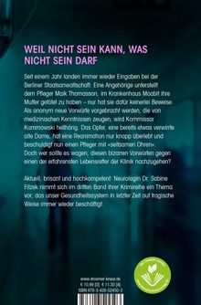 Seit einem Jahr landen immer wieder Eingaben bei der Berliner Staatsanwaltschaft: Kerstin Lauterbach unterstellt dem Pfleger Maik Thomasson, im Krankenhaus Moabit ihre Mutter getötet zu haben - nur hat sie dafür keinerlei Beweise. Als gegen Thomasson anonym neue Vorwürfe vorgebracht werden, die von medizinischen Kenntnissen zeugen, wird Kommissar Kammowski gebeten, diskret ein paar Nachforschungen anzustellen. Der Fall scheint zunächst nicht besonders dringend zu sein, doch dann stirbt im Krankenhaus eine weitere ältere Dame während Thomassons Schicht: plötzliches Herzversagen, bei allem Verständnis für den Schock der Angehörigen nicht weiter ungewöhnlich. Oder etwa doch?