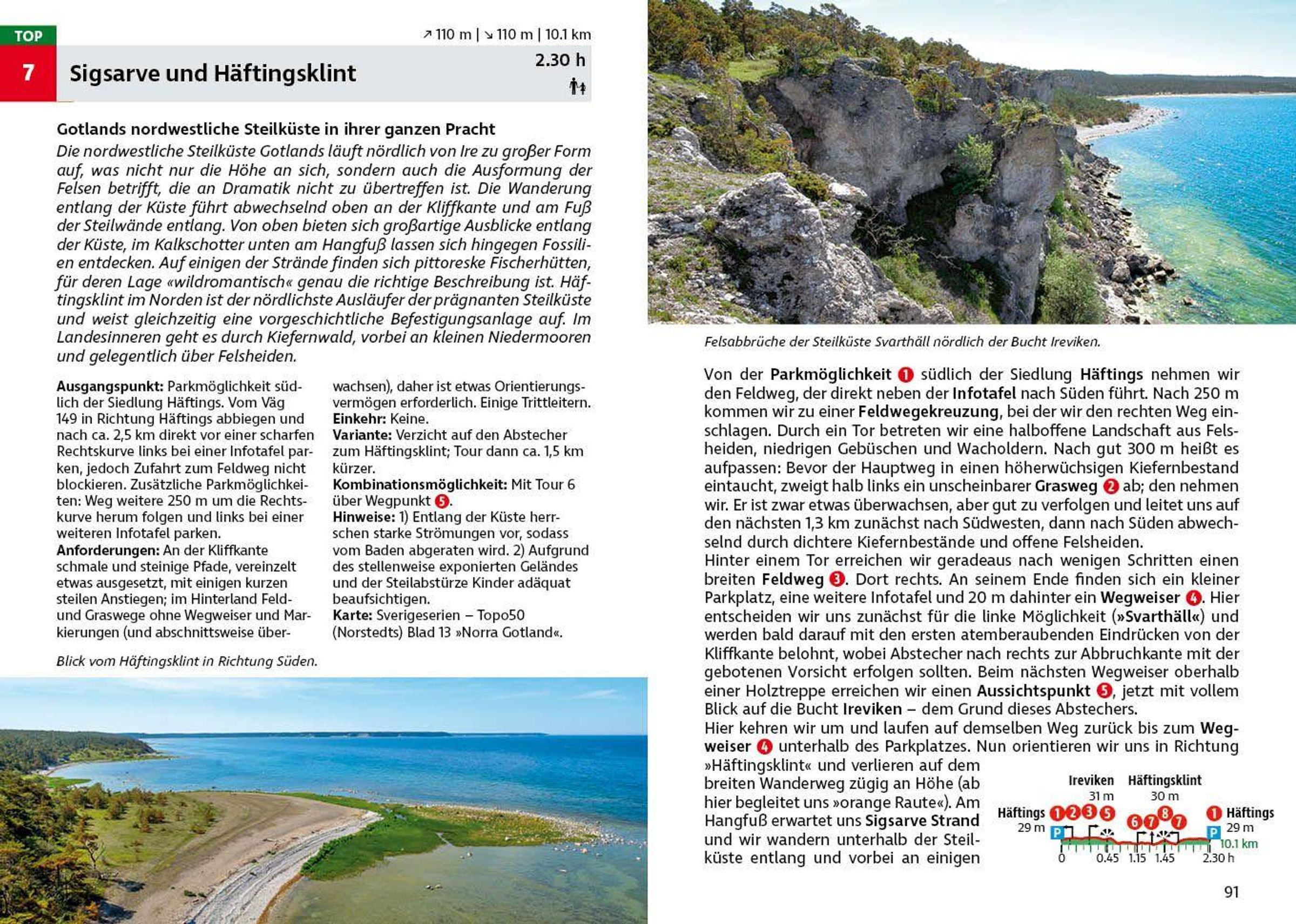 Viele Sehenswürdigkeiten liegen oft unmittelbar am Weg und können auf den Wanderungen besichtigt werden: Bronze- und eisenzeitliche Schiffssetzungen und Hügelgräber, Bildsteine und Verteidigungsanlagen aus der Wikingerzeit sowie malerische mittelalterliche Landkirchen tragen zum hohen Erlebniswert bei. Auch Gotlands pittoreske Fischersiedlungen, Windmühlen, kleine Häfen sowie das als UNESCO-Welterbe ausgewiesene Visby stehen auf dem Wanderprogramm. Jede Wanderung wird mit einer zuverlässigen Wegbeschreibung, einem Kartenausschnitt mit eingezeichneter Route und einem aussagekräftigen Streckenprofil vorgestellt. GPS-Tracks stehen zum Download bereit. Darüberhinaus machen detaillierte Informationen zur Natur und Landschaft, zu Sehenswürdigkeiten, Unterkunftsmöglichkeiten u. v.m. diesen Wanderführer zu einem idealen Reisebegleiter.